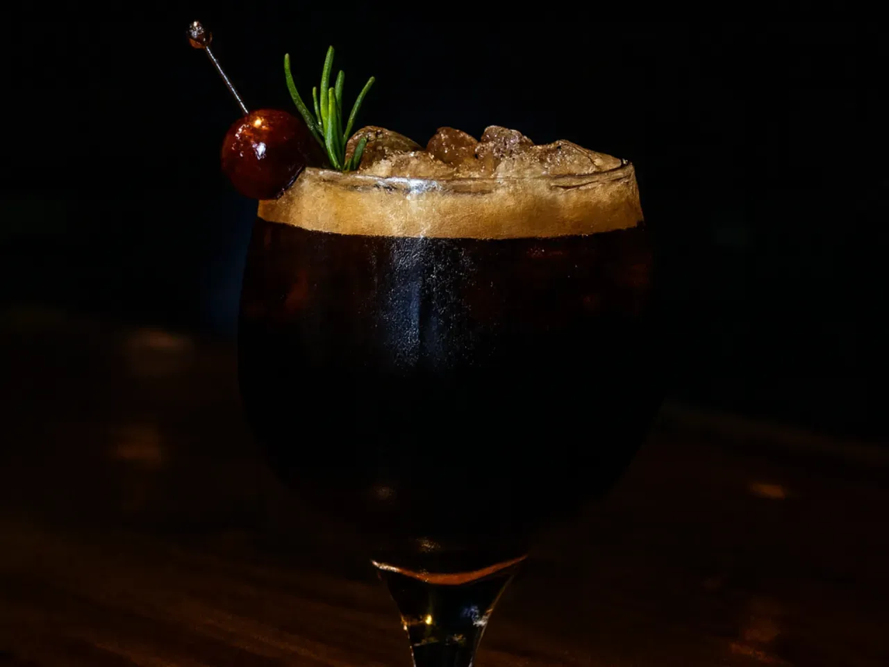 Coctel ahumado de maracuyá, café y Jägermeister, coronado con stout
