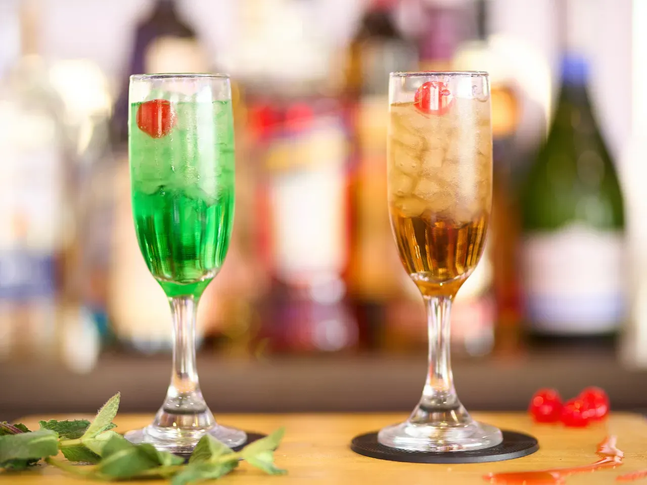 Refrescante trago con Pisco , Licor de menta, Jugo de Maracuya y Granadina.