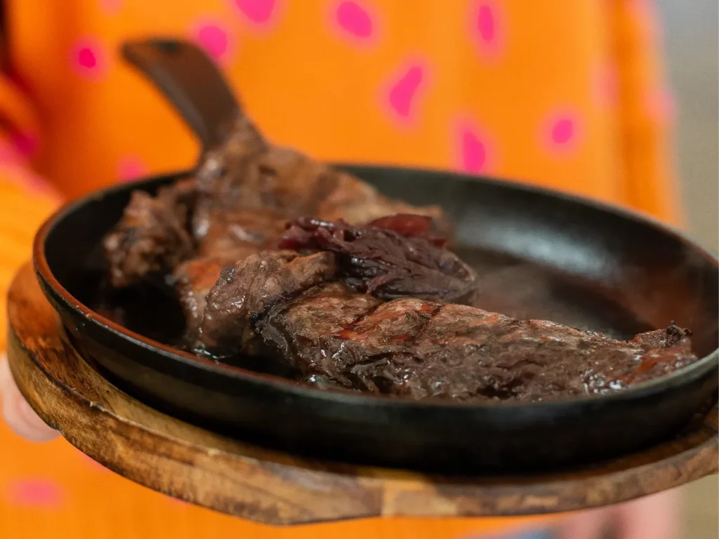 Exquisito corte de lomo vetado a la parrilla, jugoso y lleno de sabor, a lo pobre