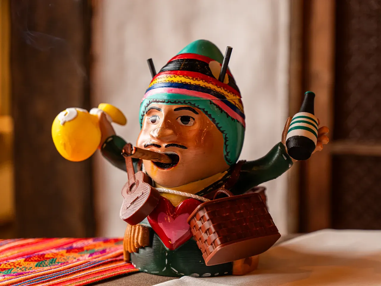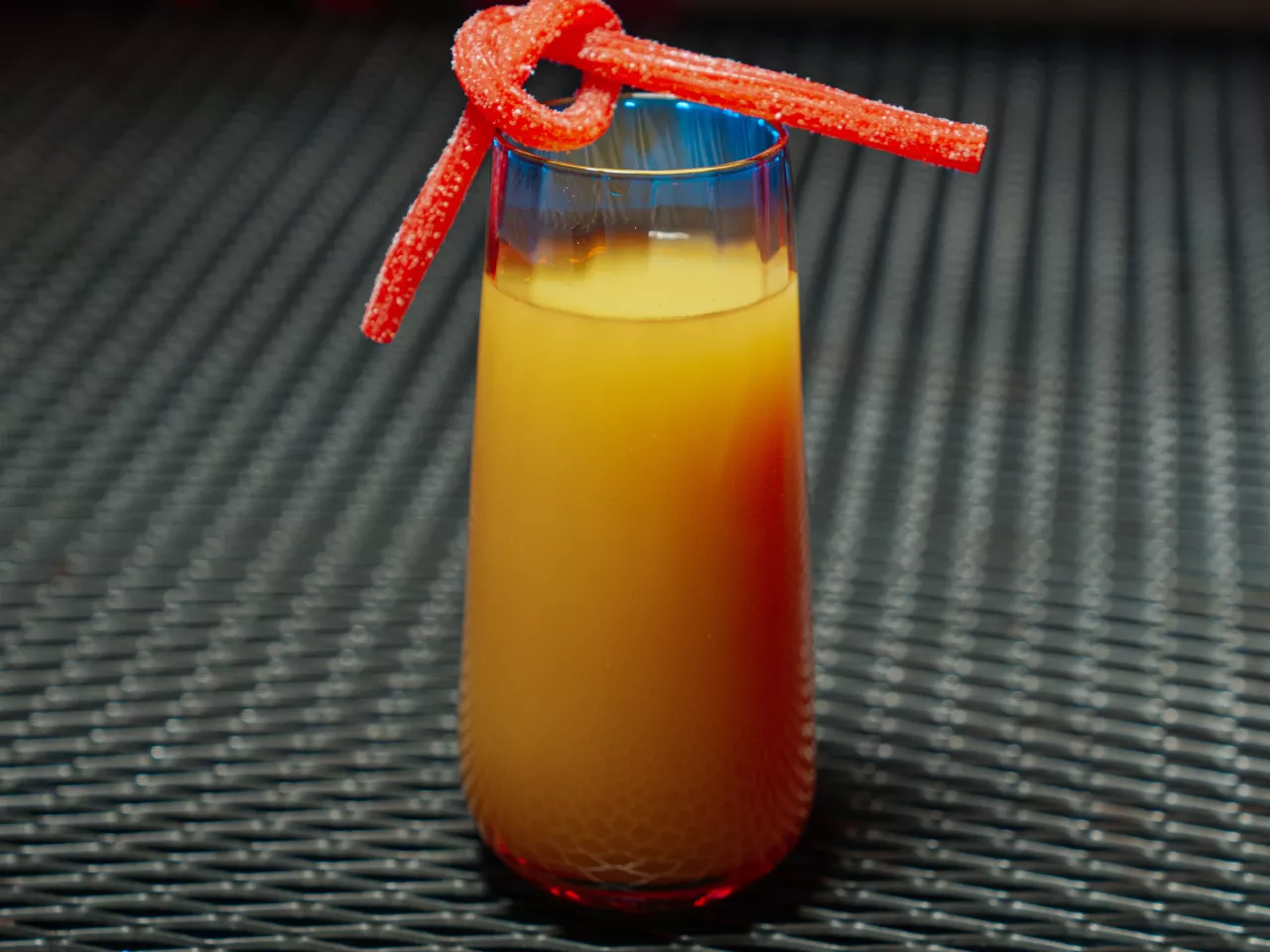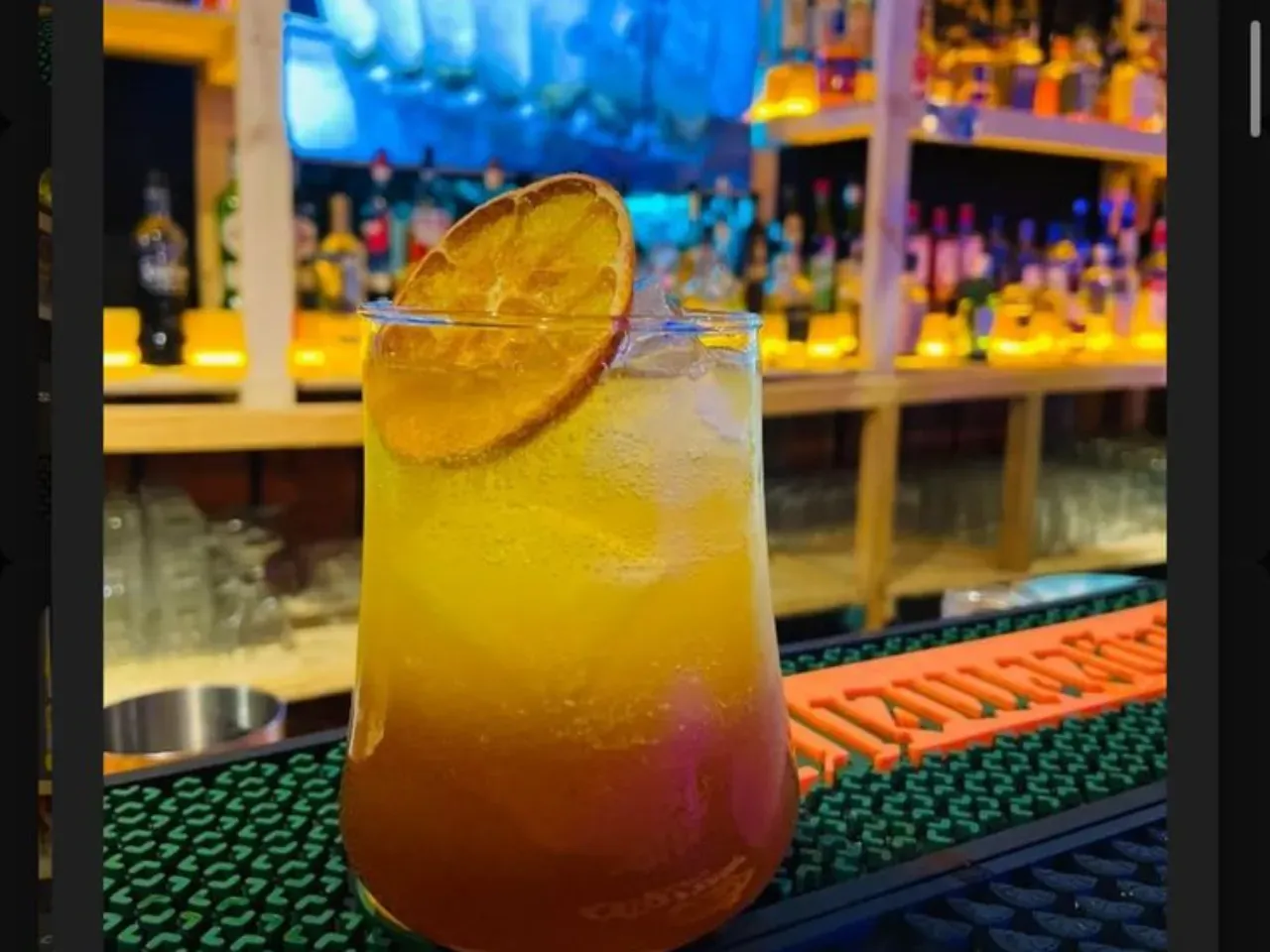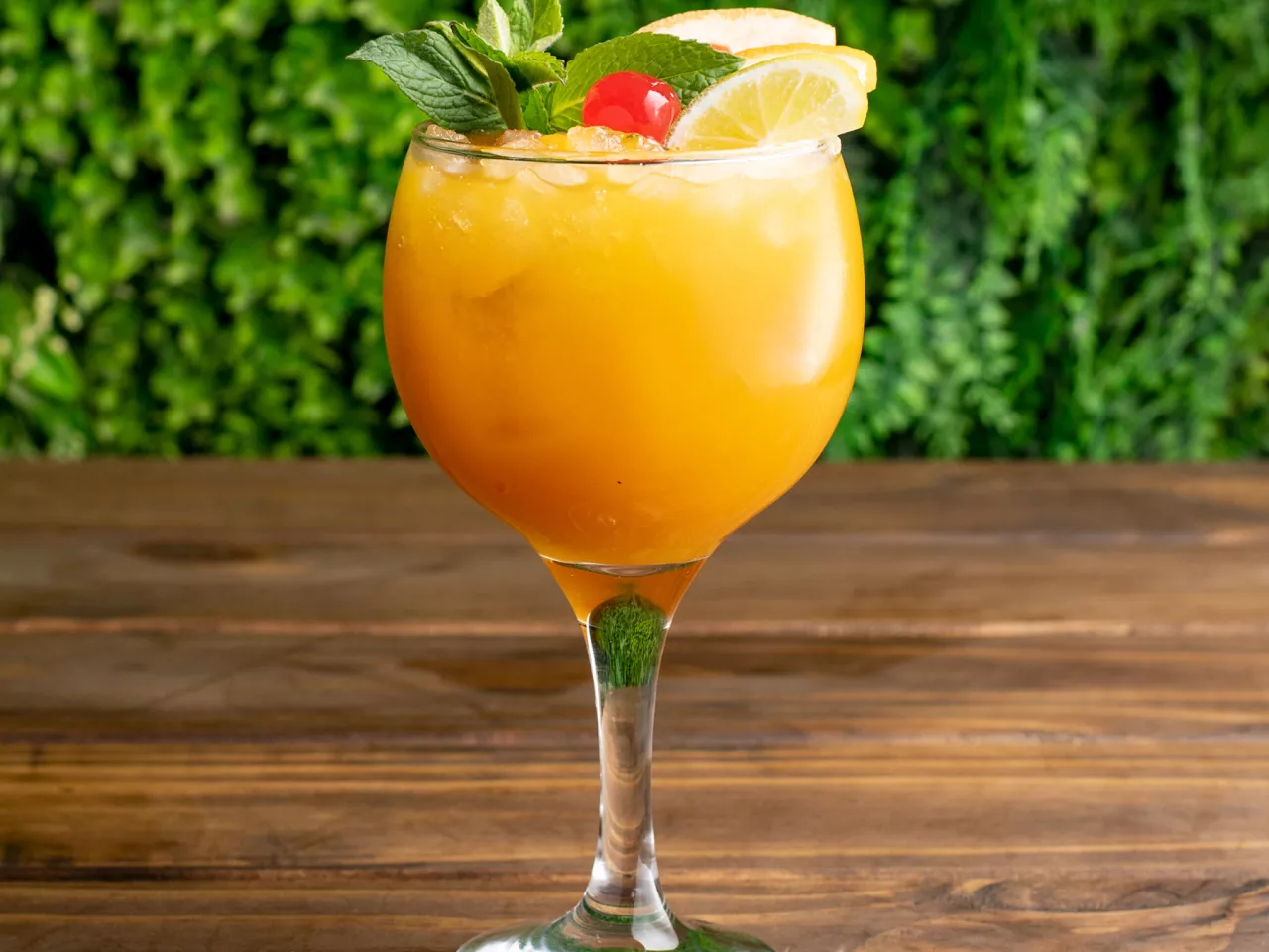 Coctel enfocado en la coctelería tiki a base de pisco, ron, miel de papaya, kuyper de mango, zumo de naranja, zumo de limon.
