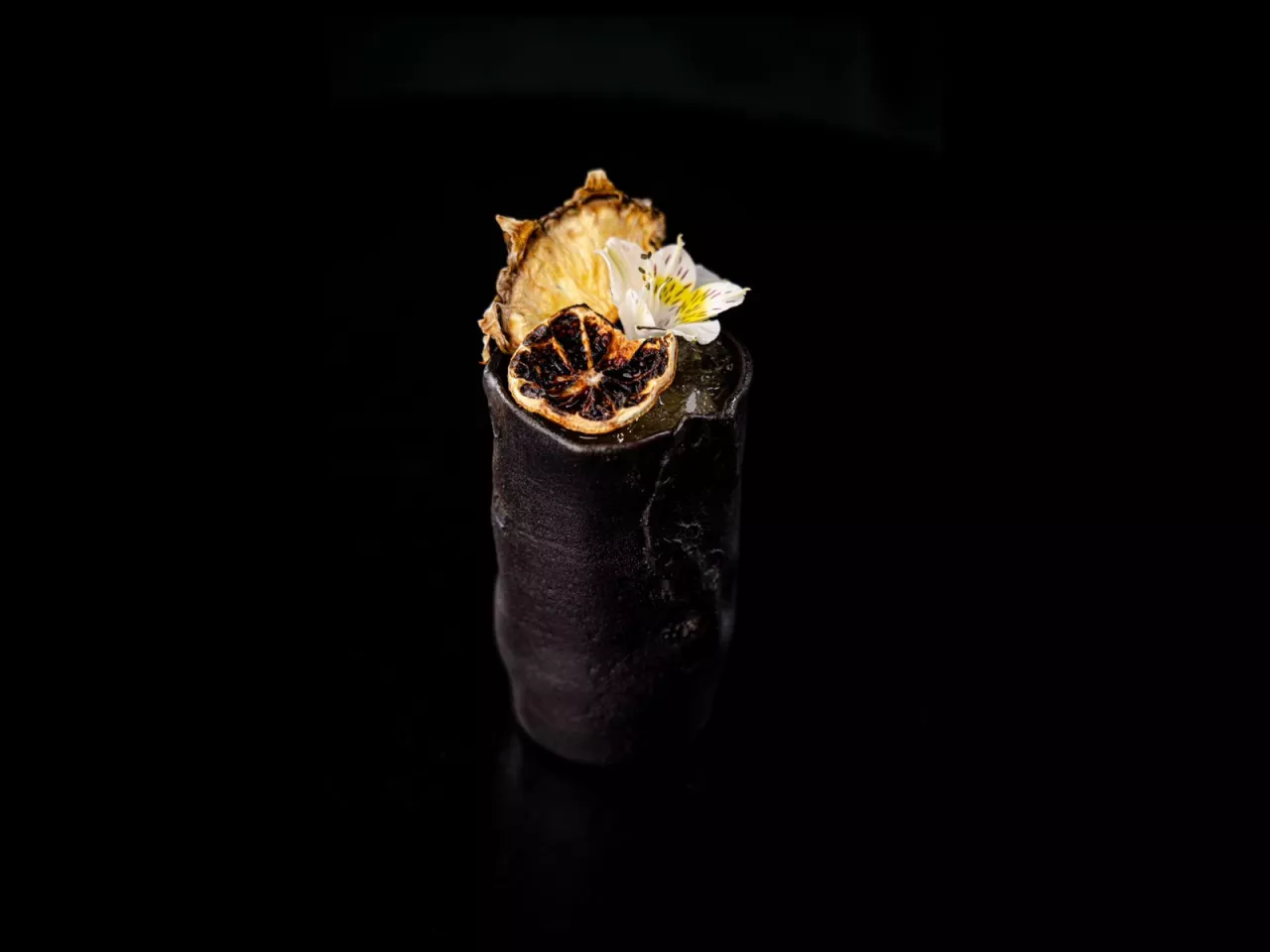 Sedoso y envolvente. Ron blanco, lichi y plátano con sésamo, rosas y un sutil perfume de absenta.