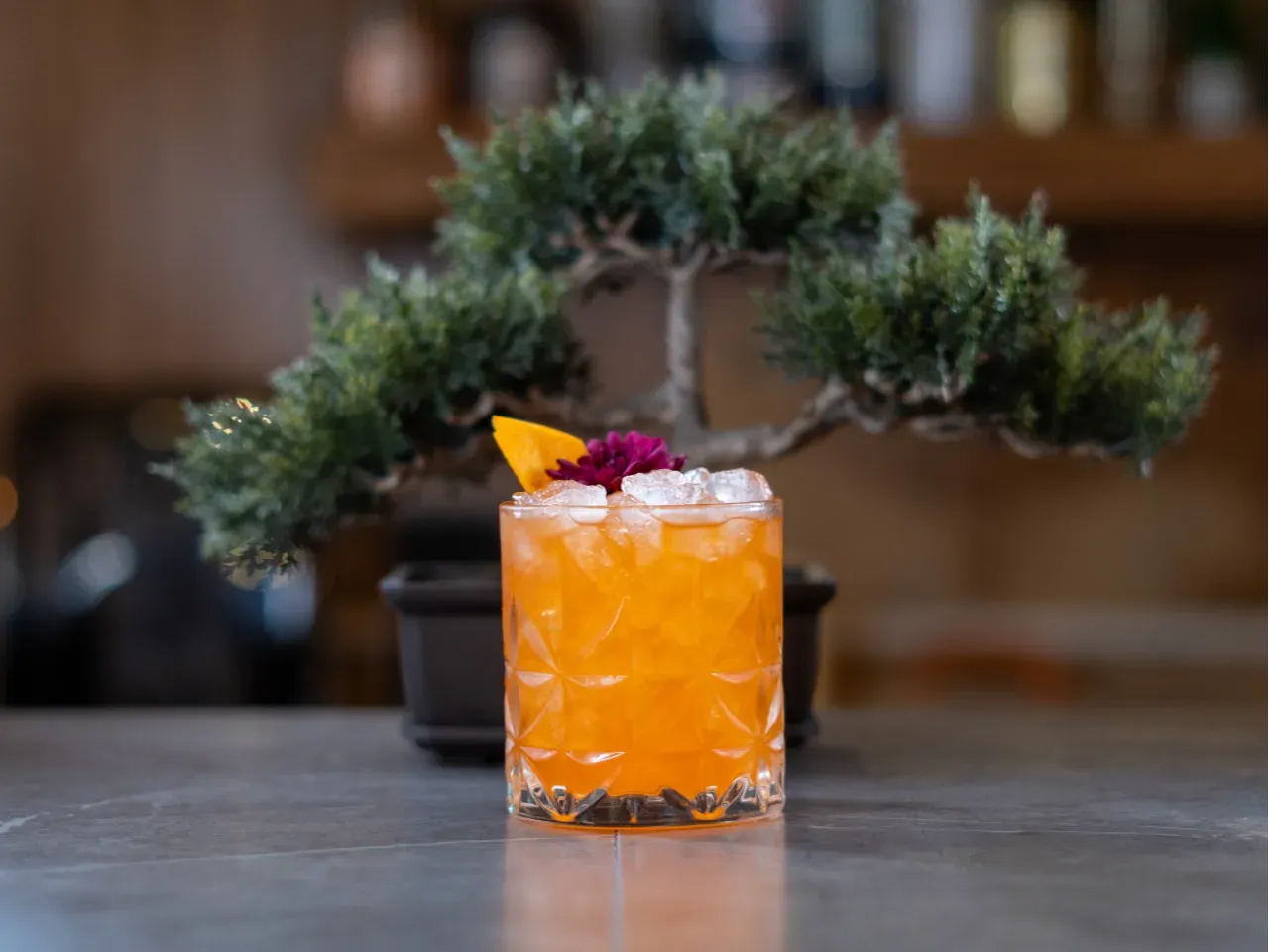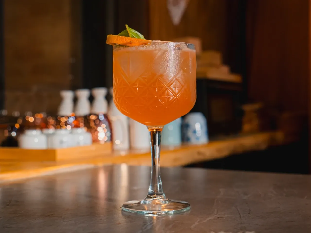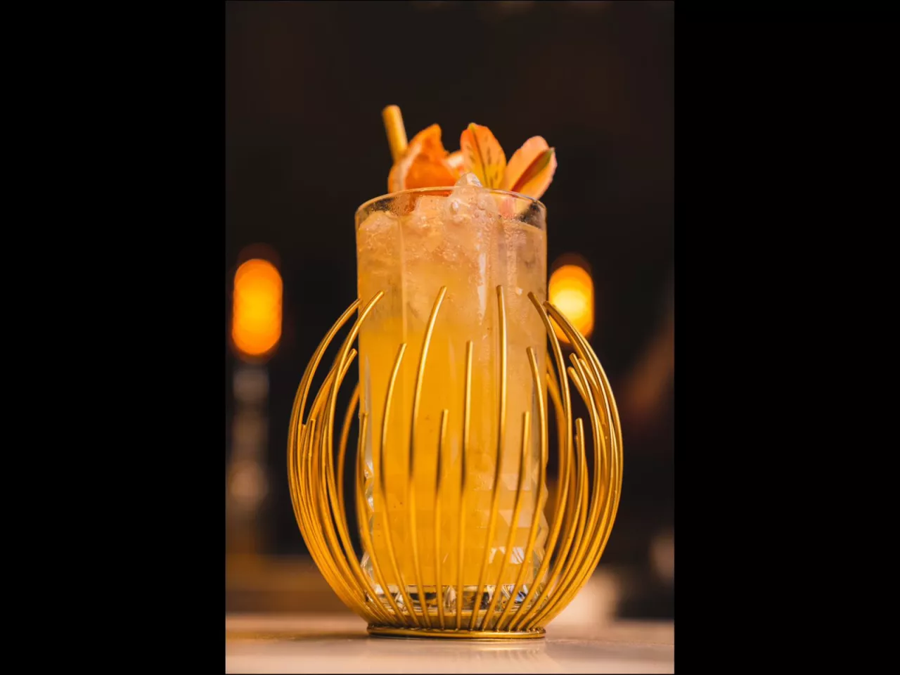 Cálido y envolvente, donde el cordial de naranja y Tanqueray Sevilla realzan su carácter cítrico. El Grand Marnier aportan profundidad y elegancia, mientras el jerez y Licor 43 suman notas especiadas y un final sedoso.