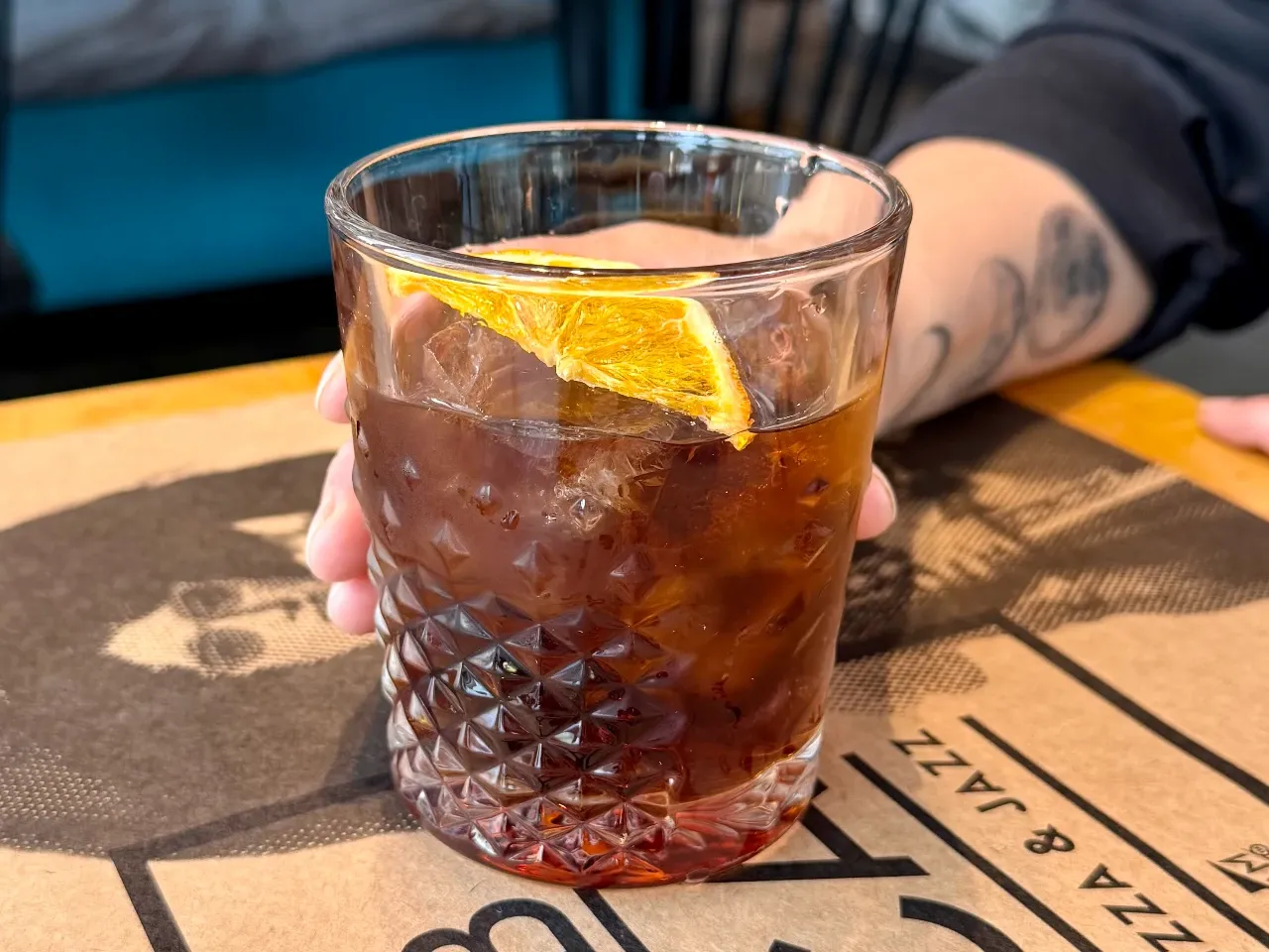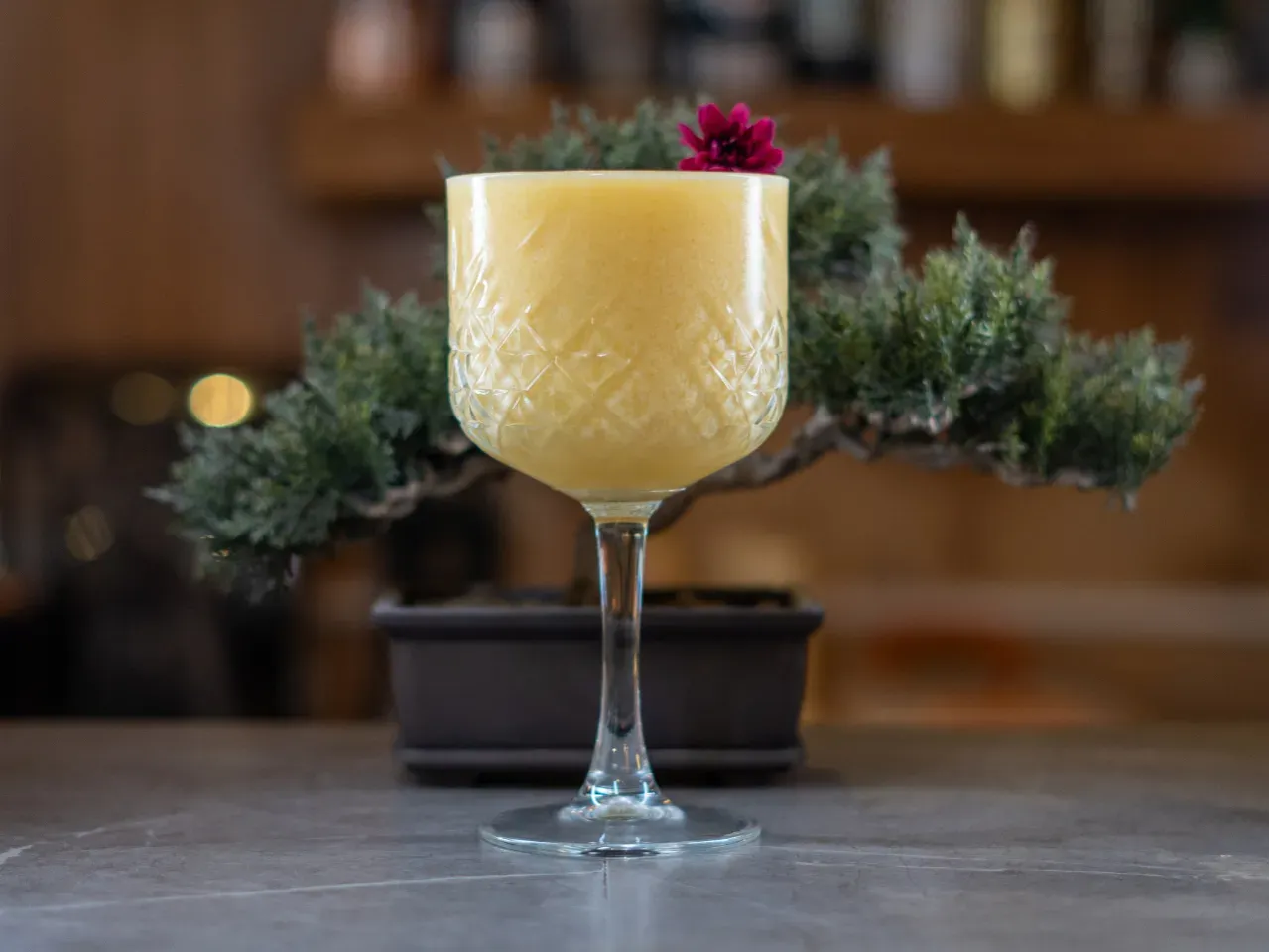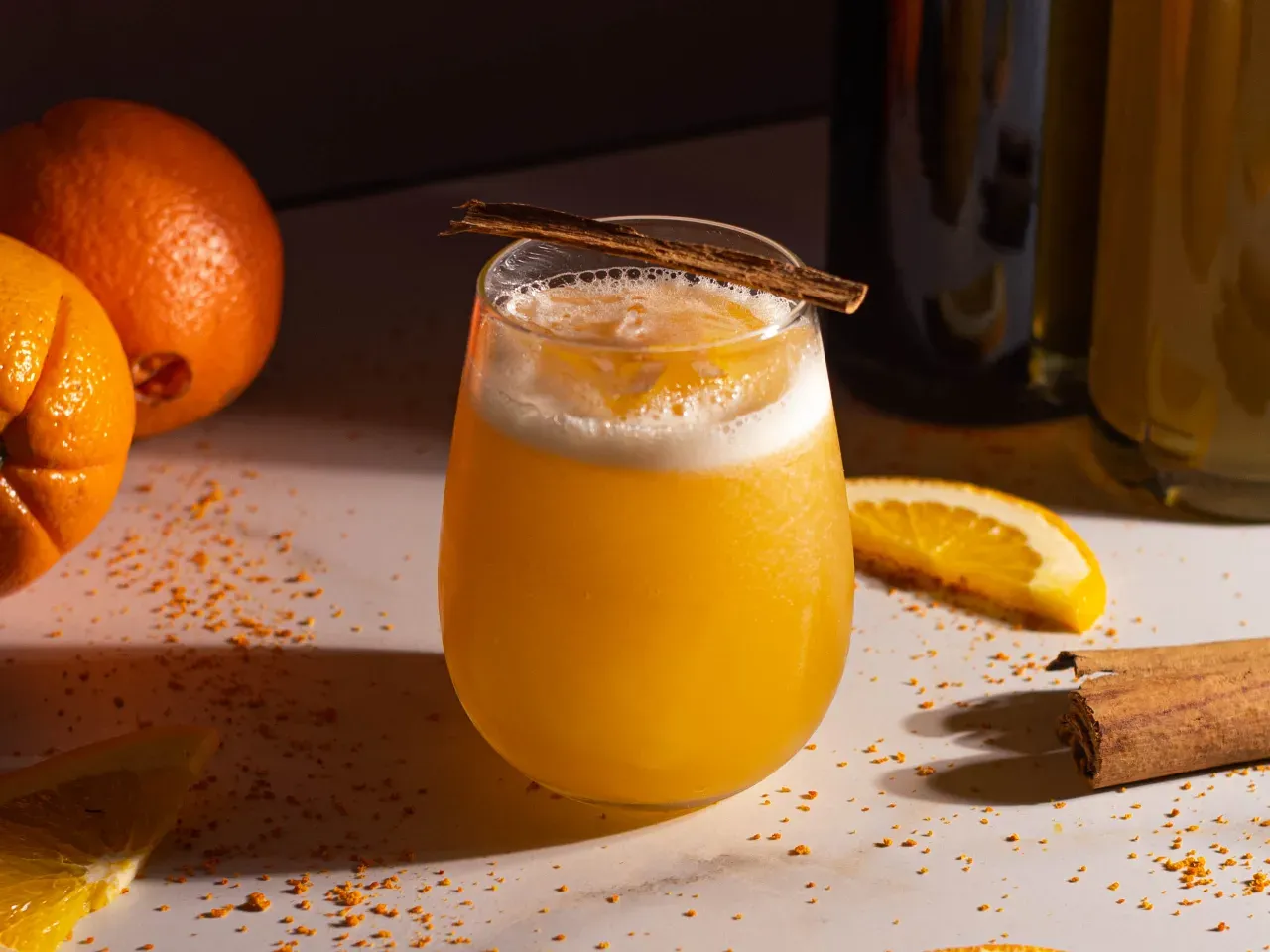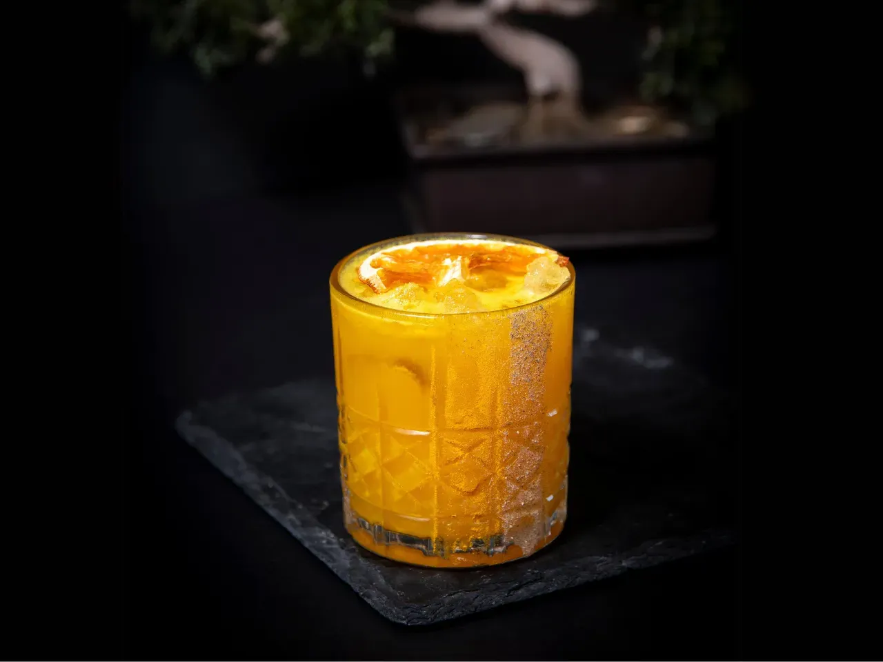 Cálido y envolvente, donde el cordial de naranja y Tanqueray Sevilla realzan su carácter cítrico. El Grand Marnier aportan profundidad y elegancia, mientras el jerez y Licor 43 suman notas especiadas y un final sedoso.
