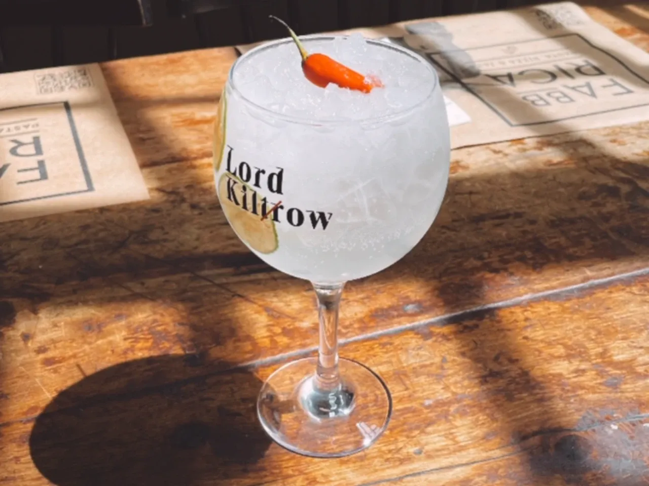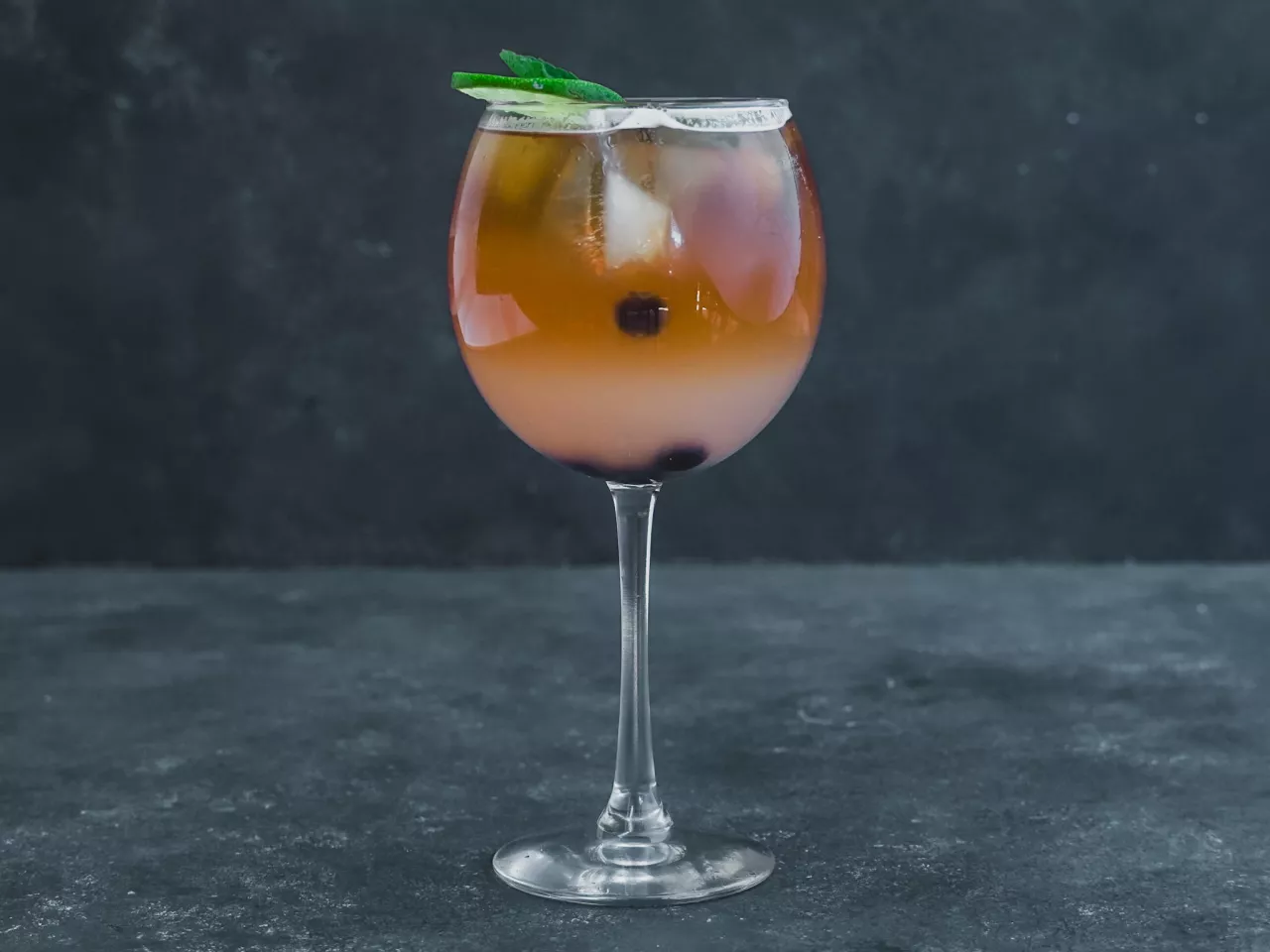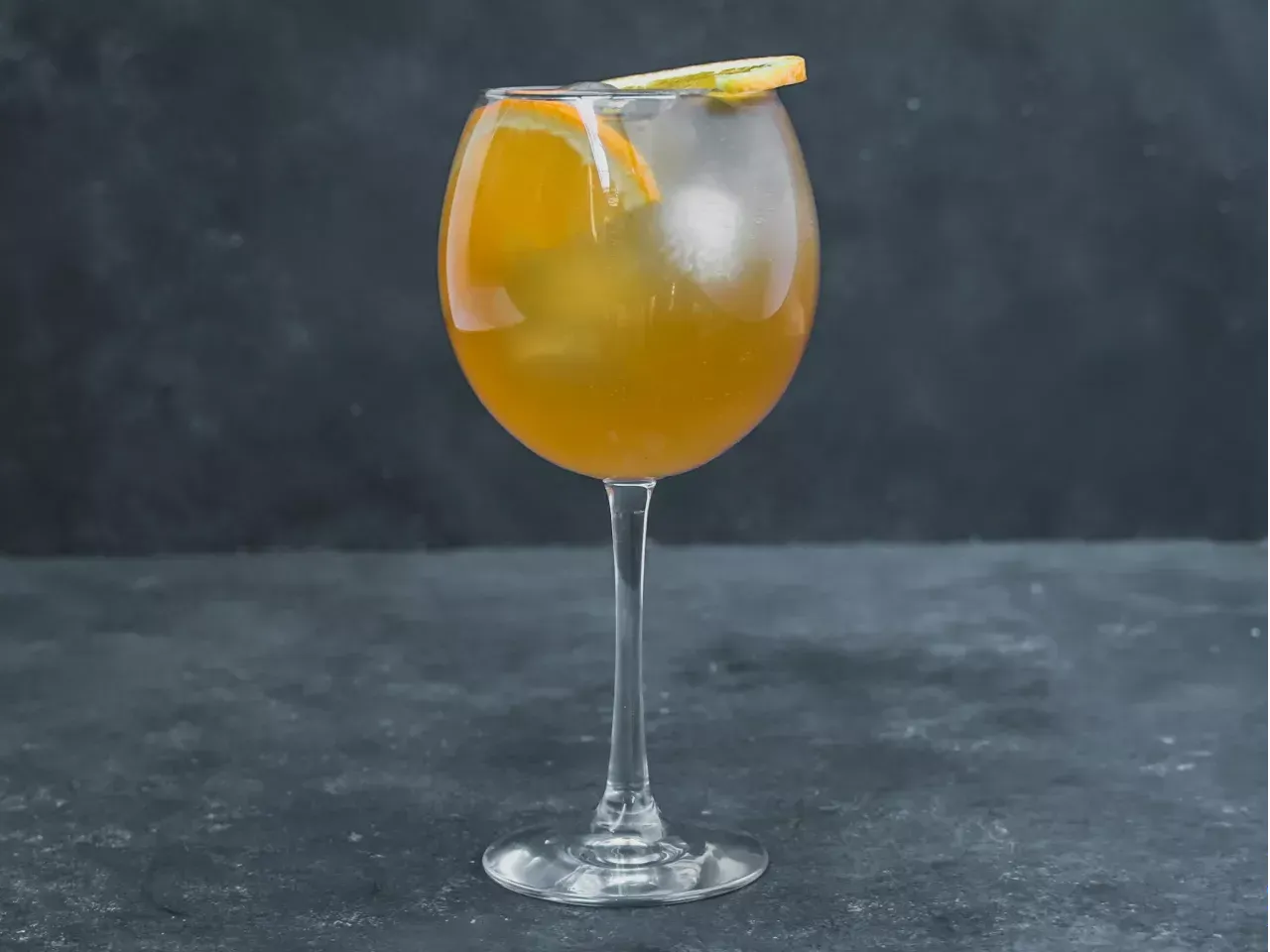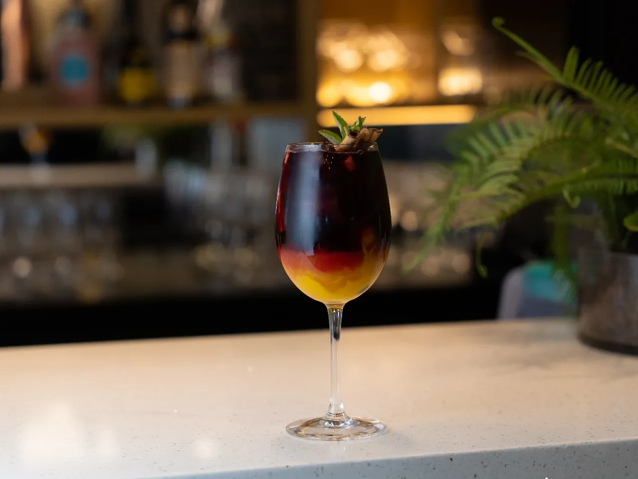 Manzana roja, limón amarillo y naranja macerado en Carménère, jugo de naranja, pisco y un top de tónica Thomas Henry (Dulce y Fresco)