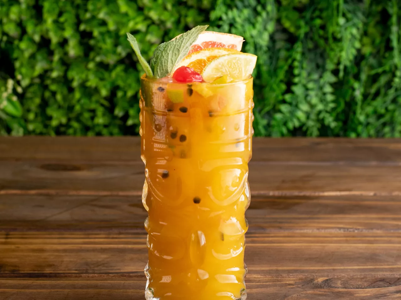 RonSpiced, pulpa de piña y maracuyá, jugo de naranja — exótico, tropical y especiado.