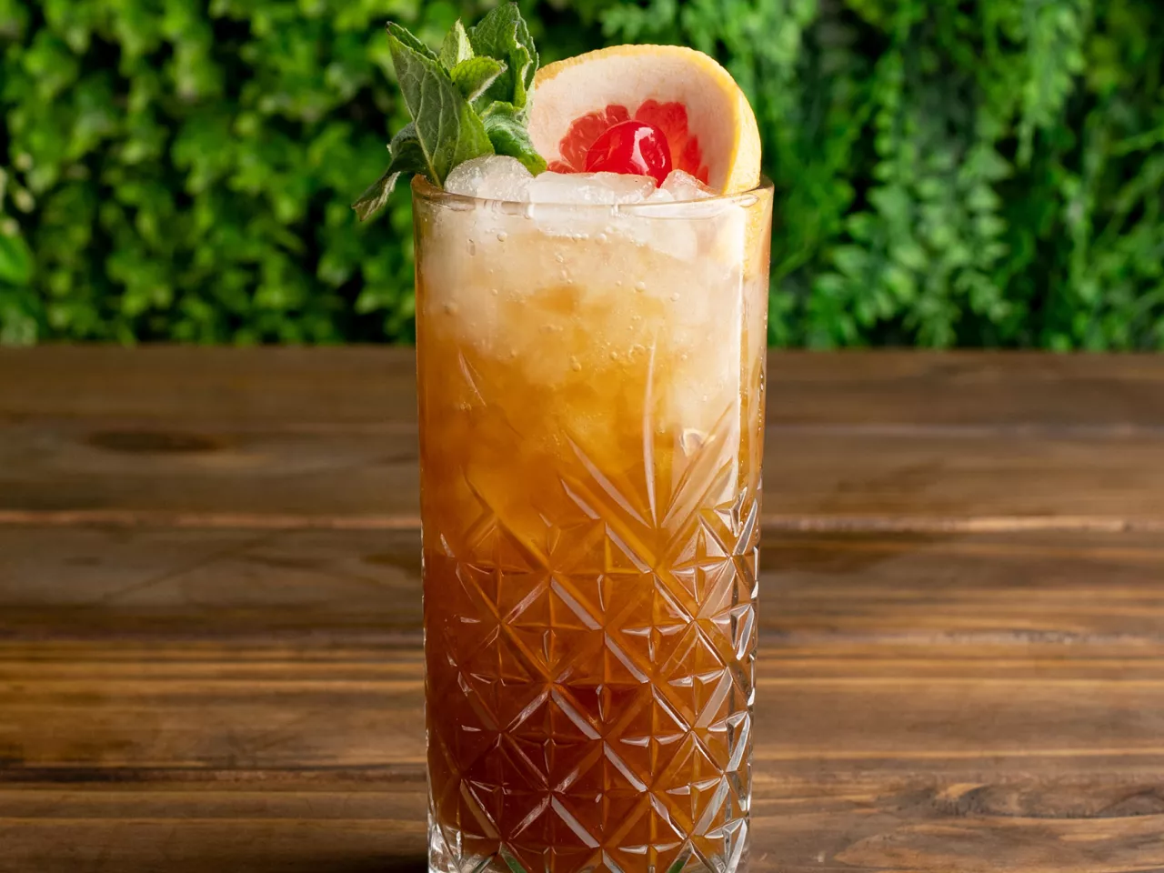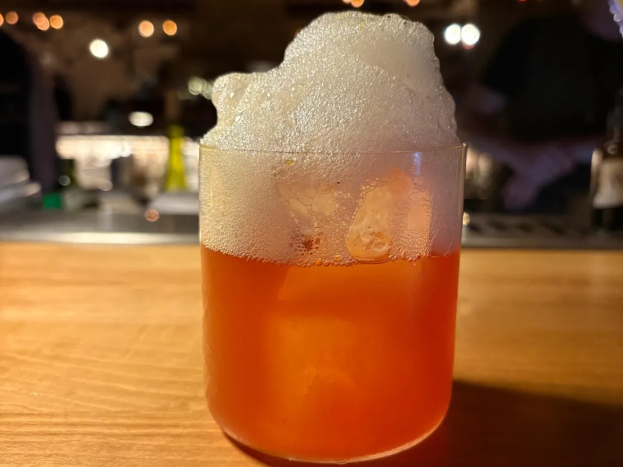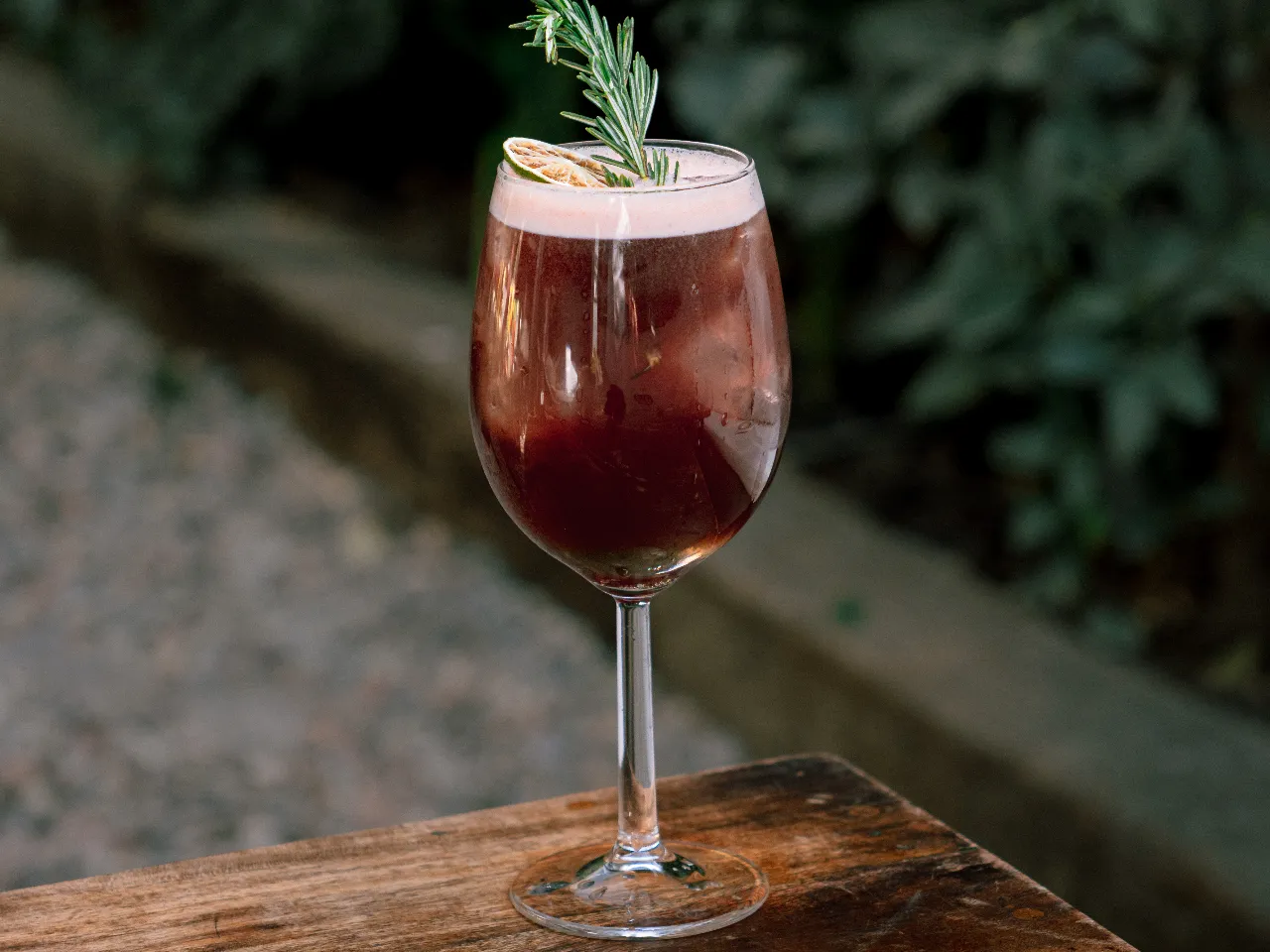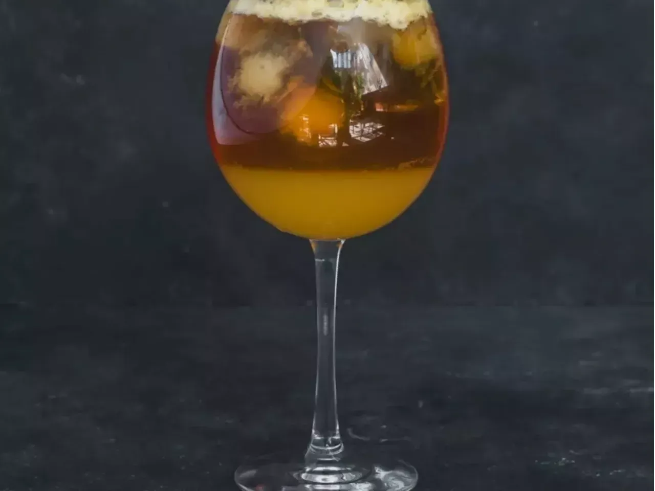 Aperitivo dulce/amargo a base de jugo de pomelo, Ramazzotti, whisky, vino tinto y licor Araucano, bajo una sedosa capa de espuma.
