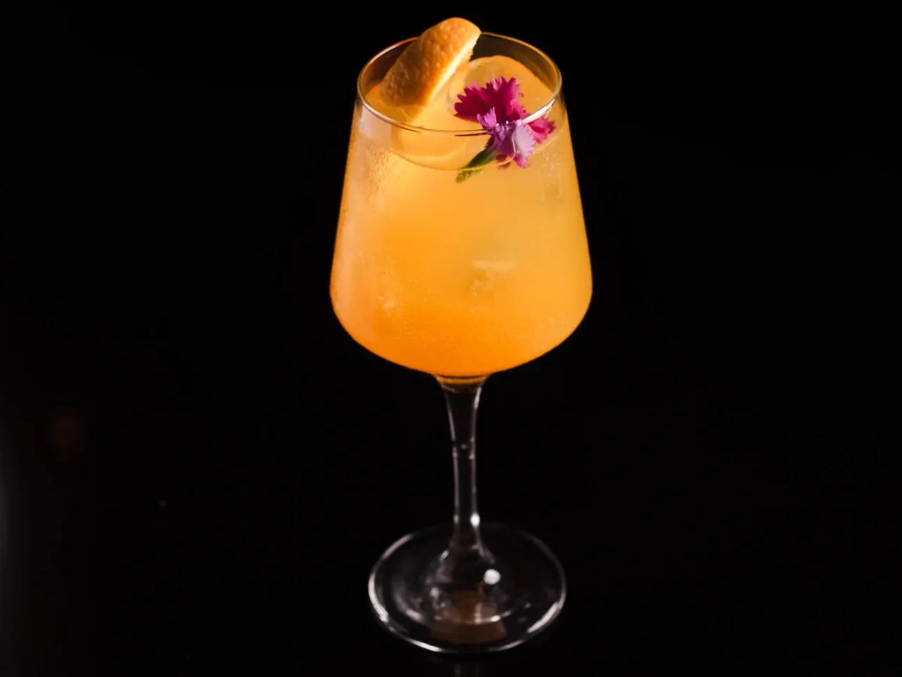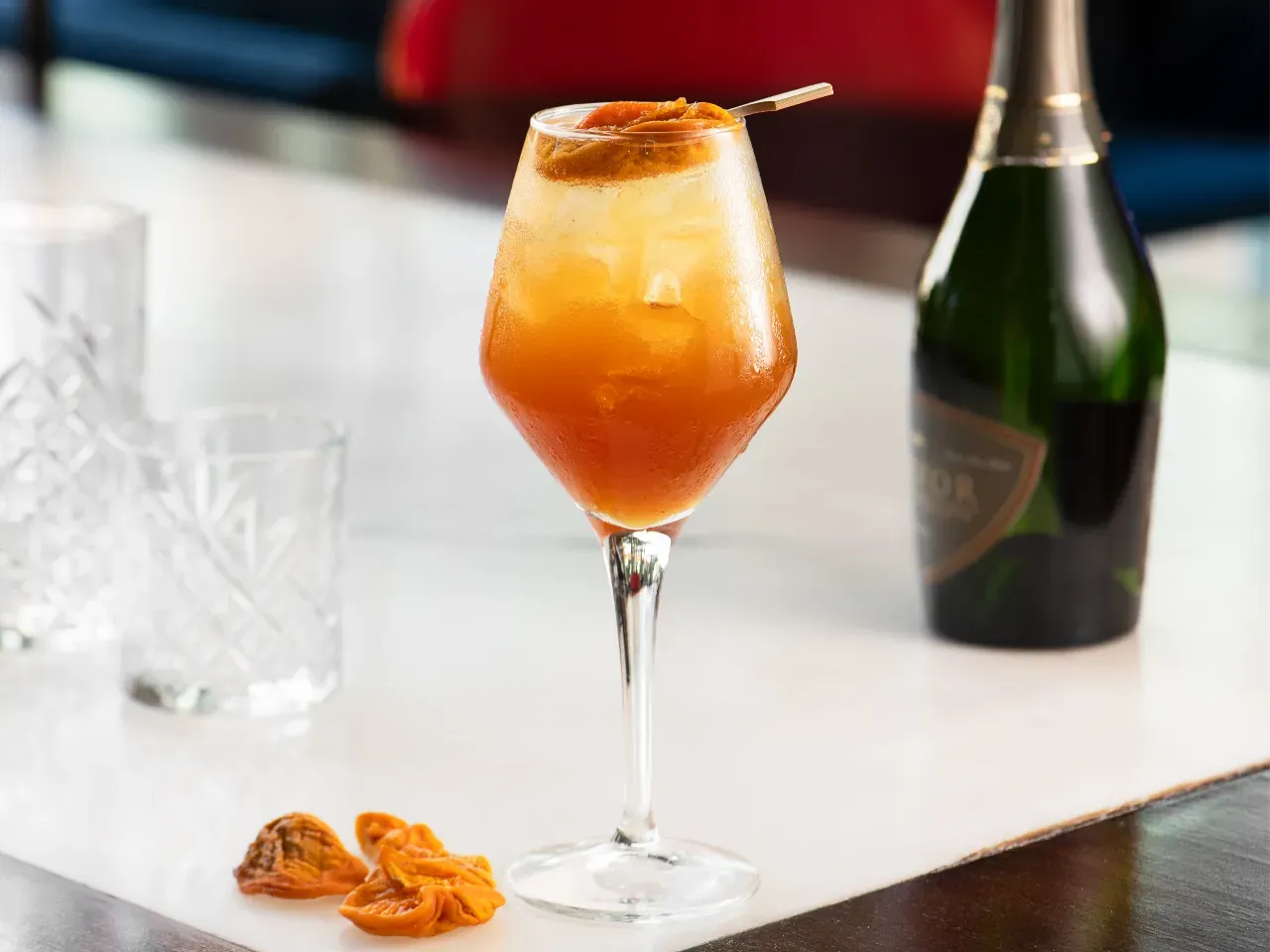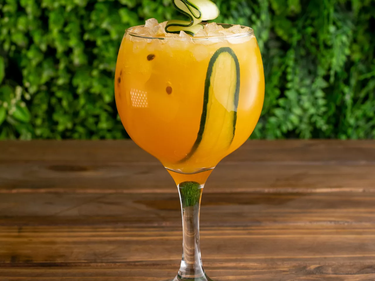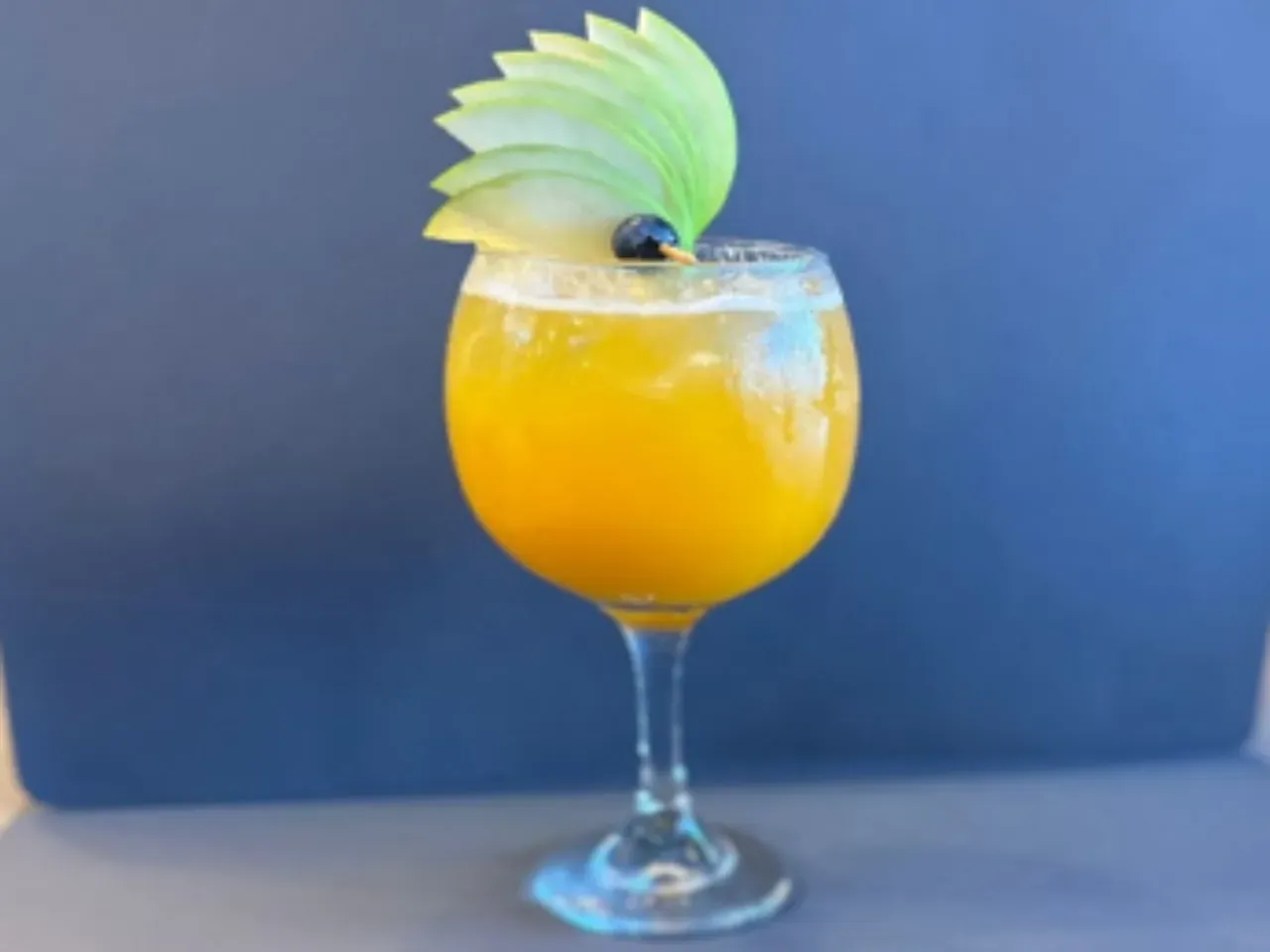 Cóctel creado en base a gin Kantal de origen nacional, espumante Viñamar Brut, zumo de maracuyá y naranja, finalizado con un toque de syrup de la casa y deshidratado de naranja.
