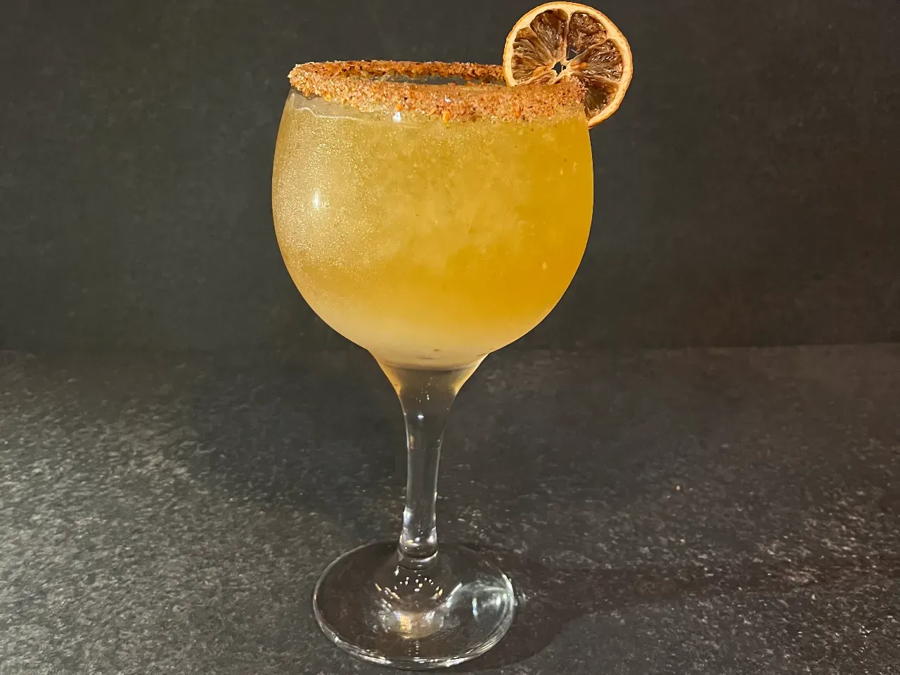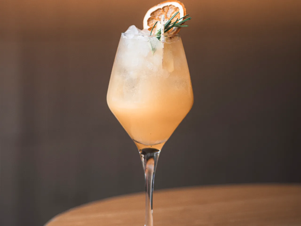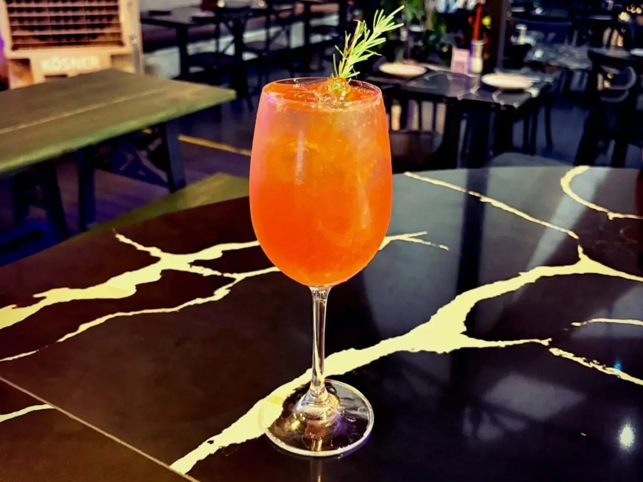 Cóctel creado en base a gin Kantal de origen nacional, espumante Viñamar Brut, zumo de maracuyá y naranja, finalizado con un toque de syrup de la casa y deshidratado de naranja.