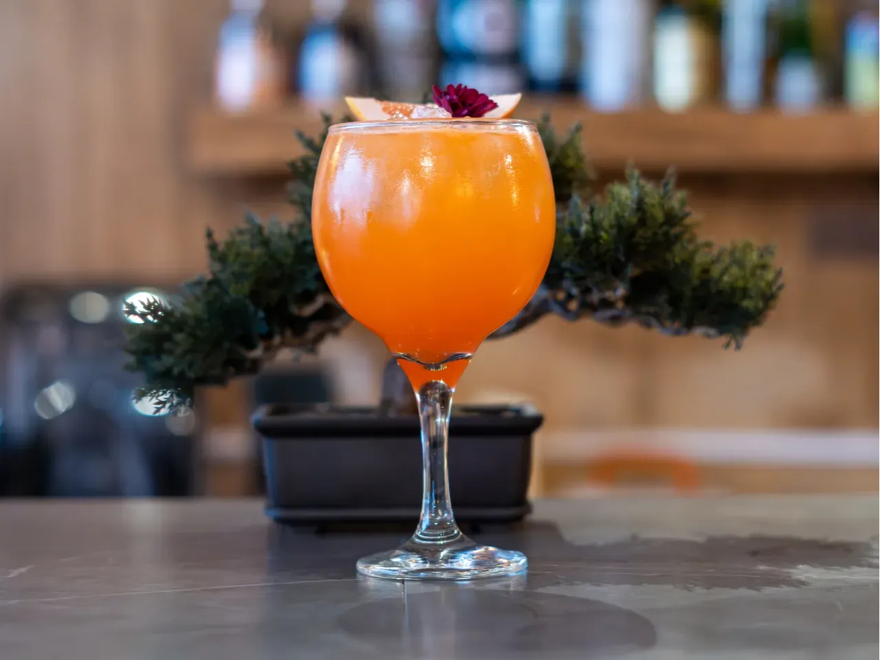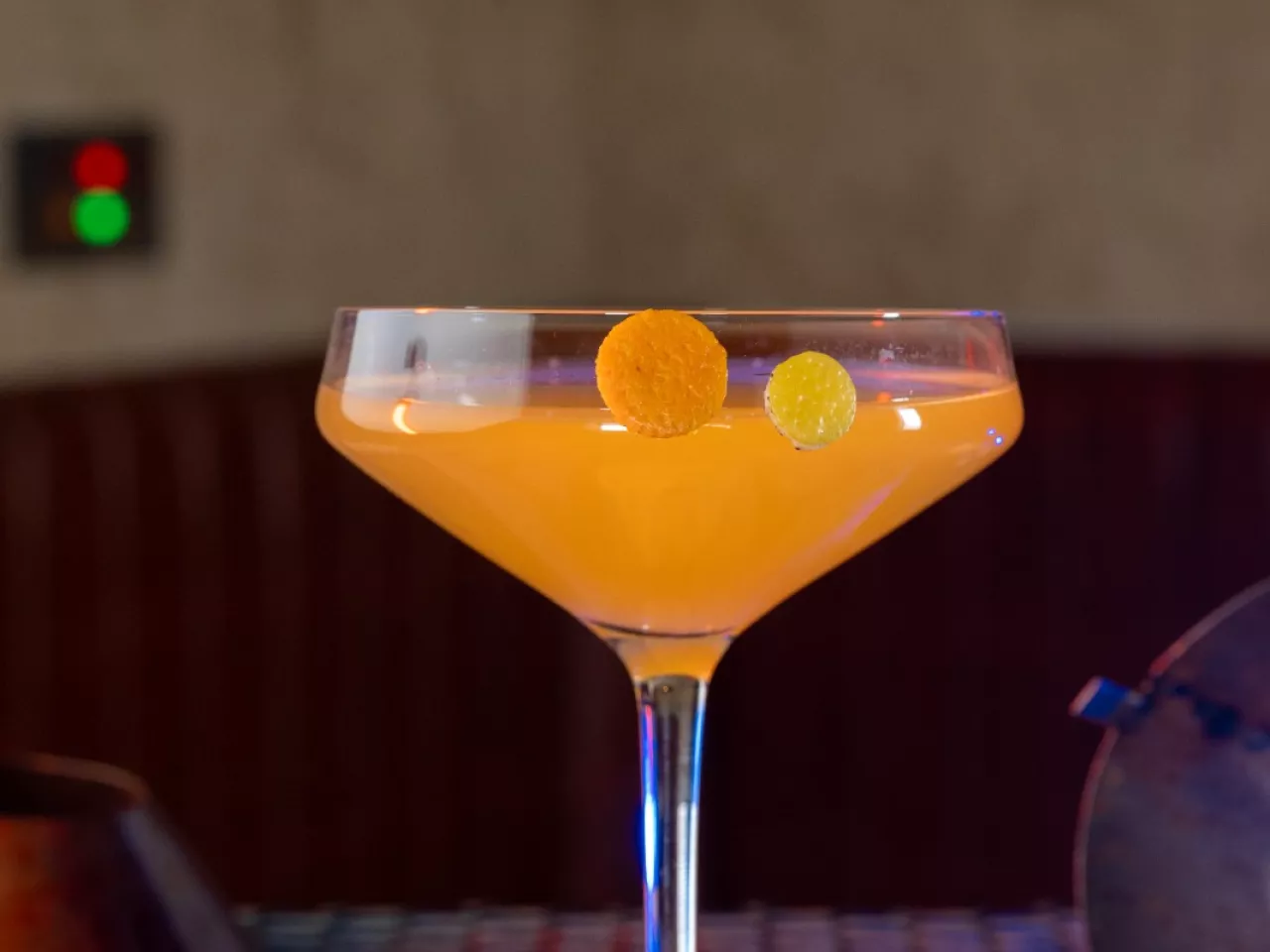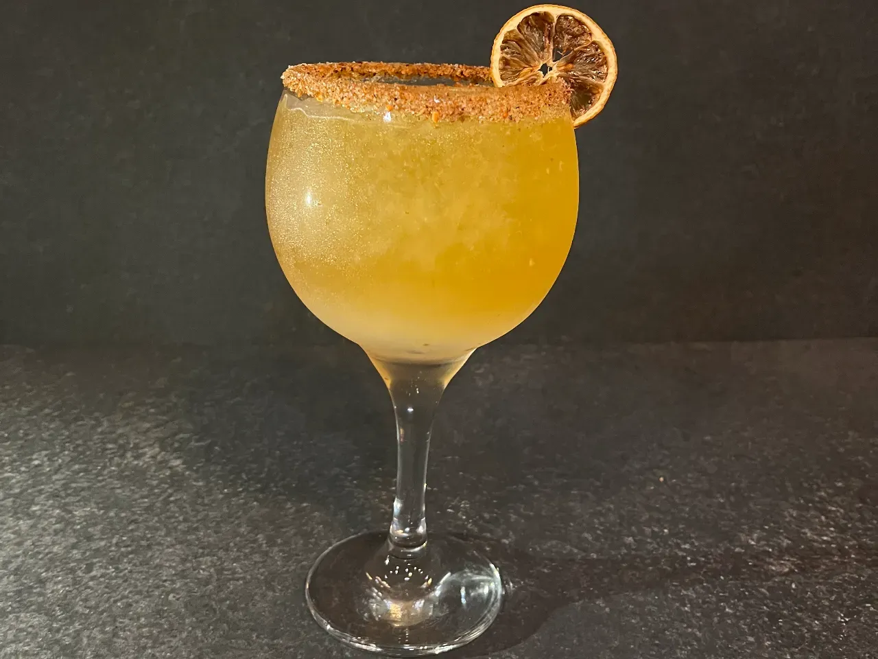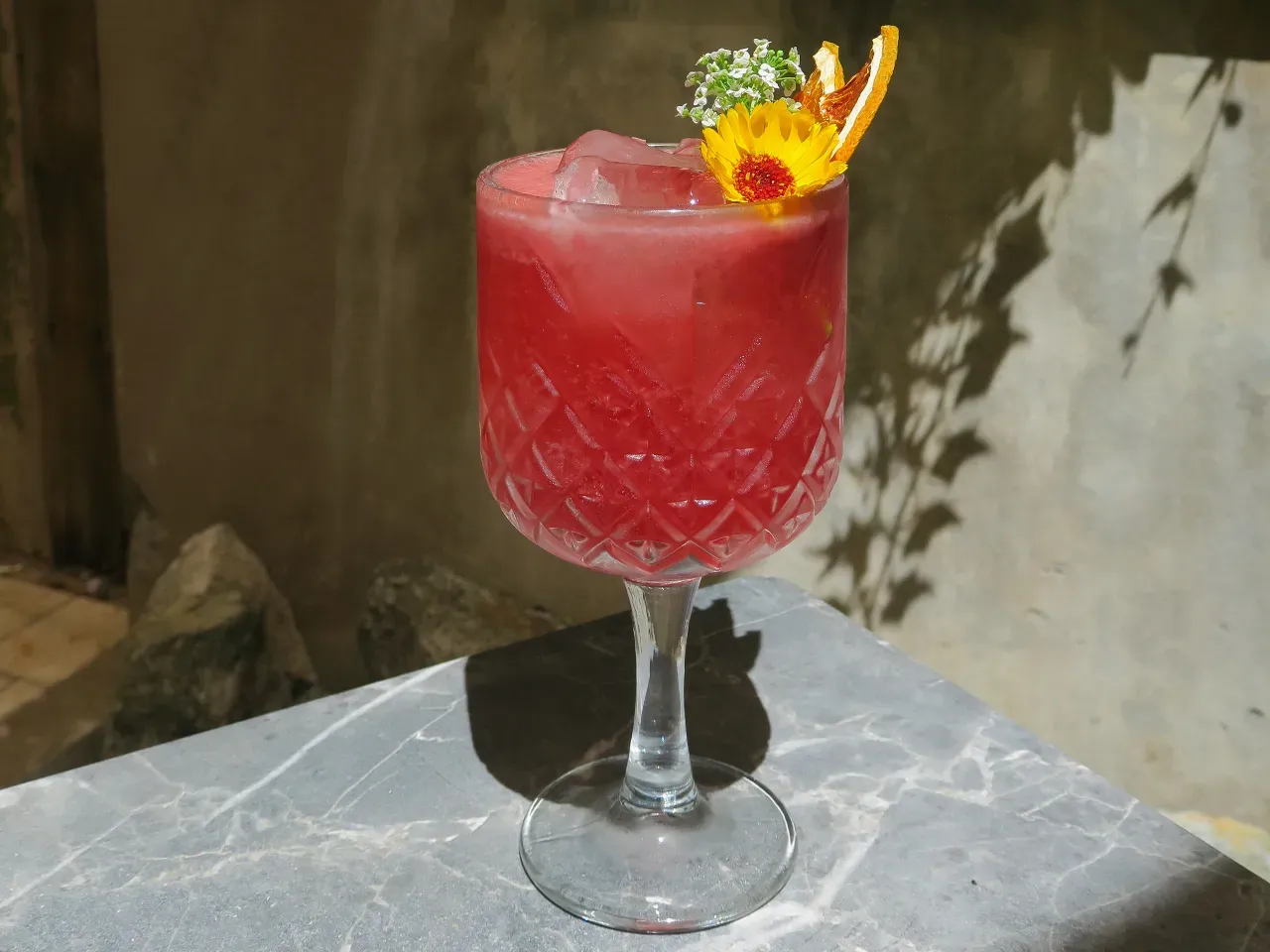 Cóctel creado en base a gin Kantal de origen nacional, espumante Viñamar Brut, zumo de maracuyá y naranja, finalizado con un toque de syrup de la casa y deshidratado de naranja.
