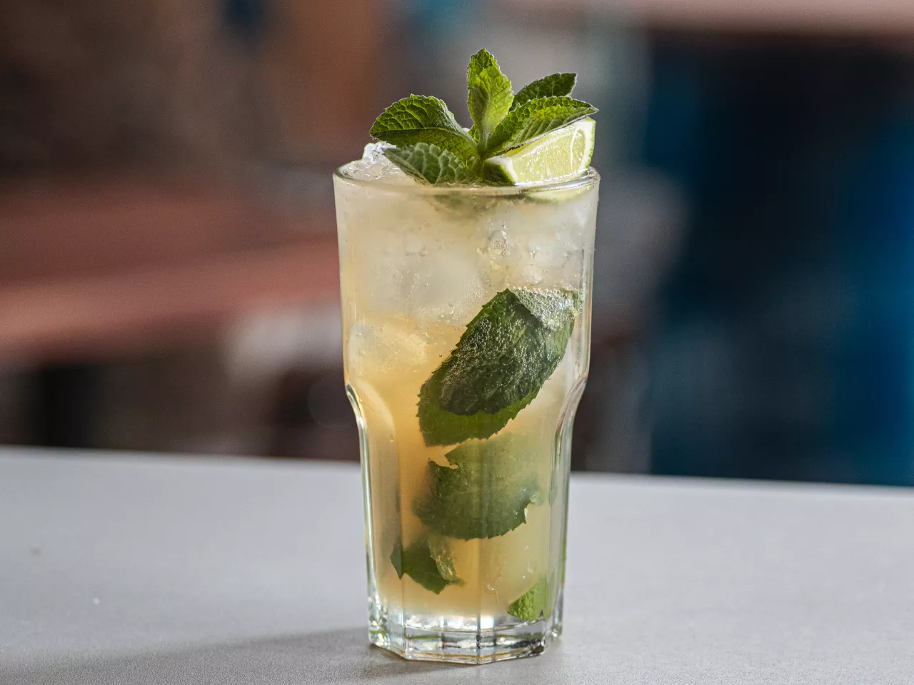 Ron Bacardí Tropical, menta, syrup simple, limón y soda.