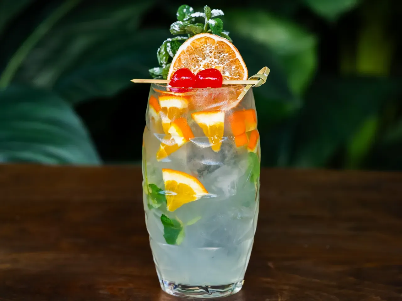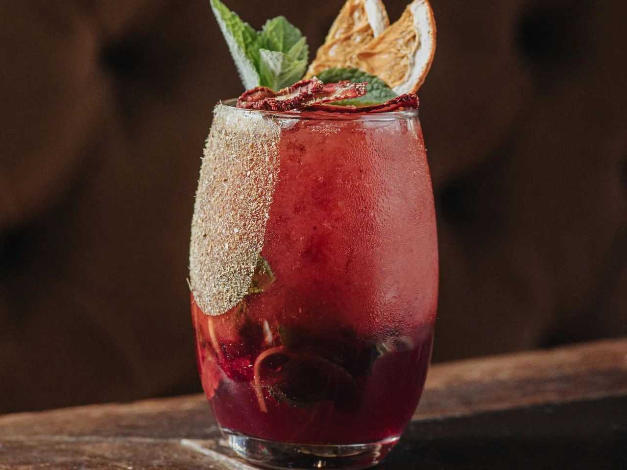 Cachaça vibrante que se funde con frambuesa, naranja y maracuyá en un perfil tropical y seductor. La albahaca fresca aporta un matiz herbal delicado, mientras el bitter de naranja intensifica su carácter. Un cóctel audaz, aromático y de final persistente.