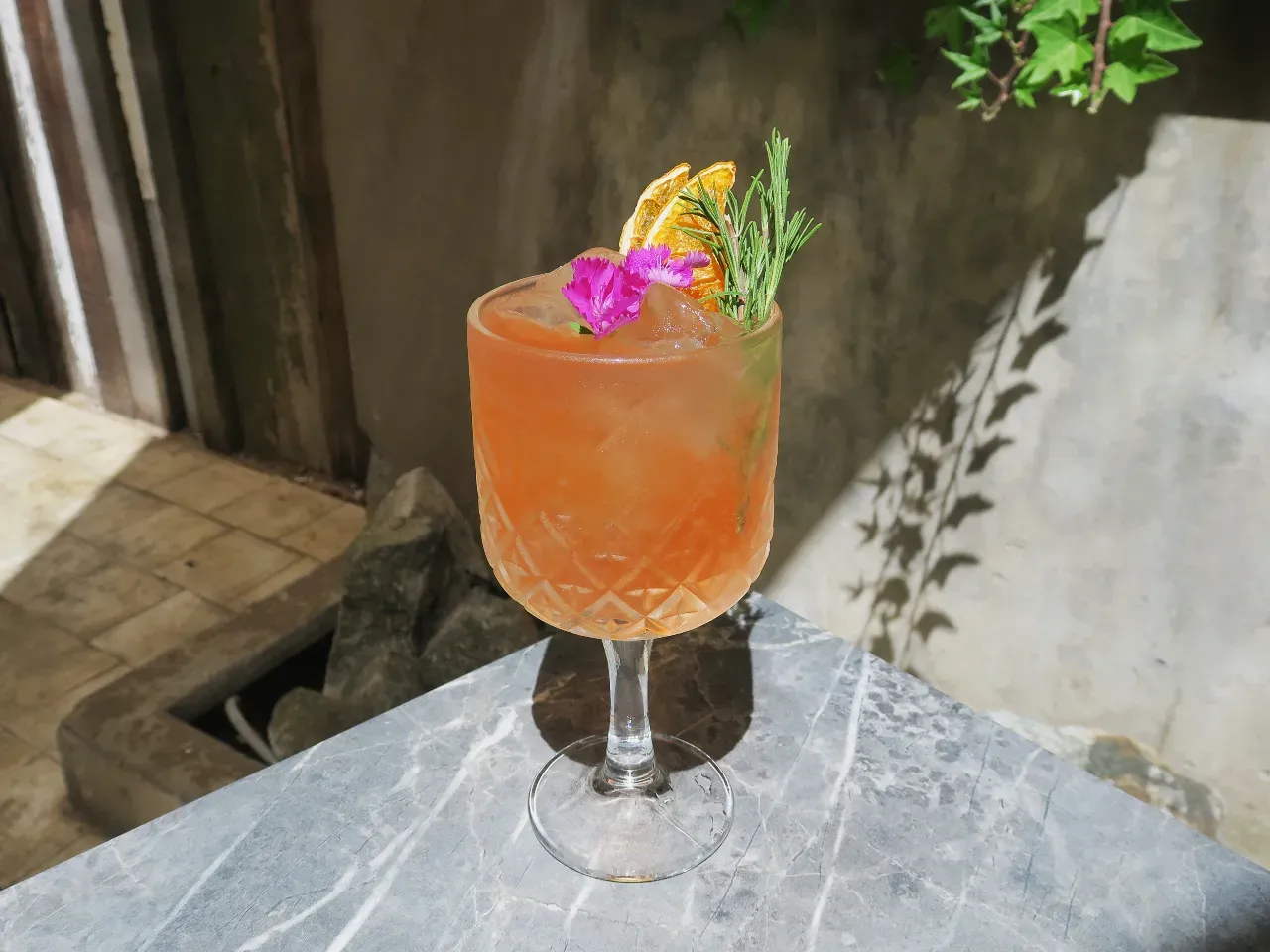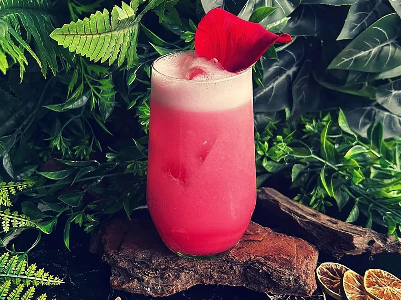 Gin y Campari se entrelazan con la frescura cítrica de pomelo y naranja, realzados por un delicado syrup de romero. Se corona con Fentimans Rose Lemonade, aportando un matiz floral y vibrante en un cóctel elegante y refrescante.