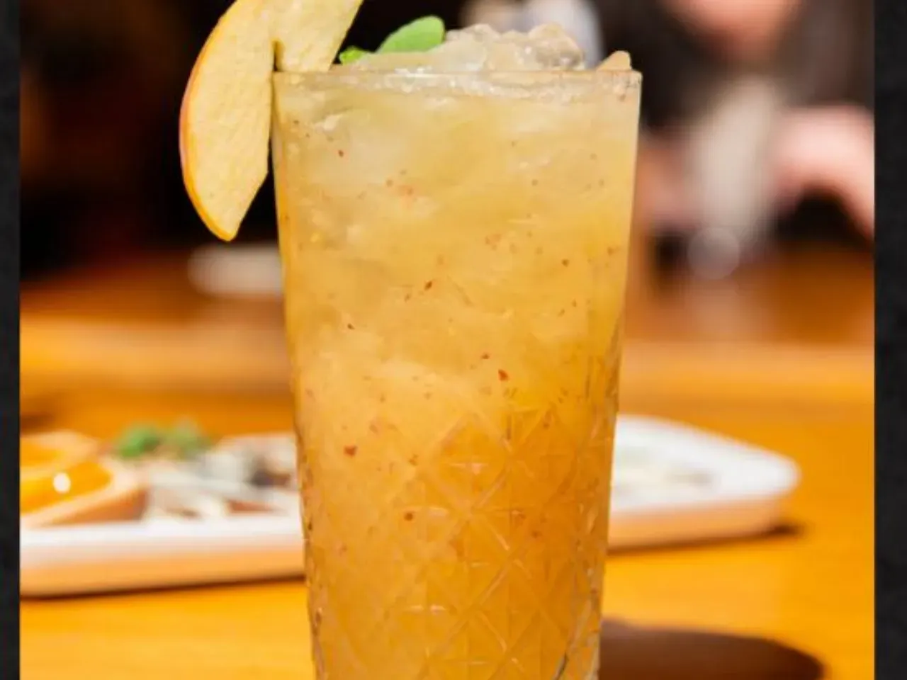 Whisky Monkey Shoulders, Macerado manzana canela, syrup papaya canela, shrub de piña y soda
