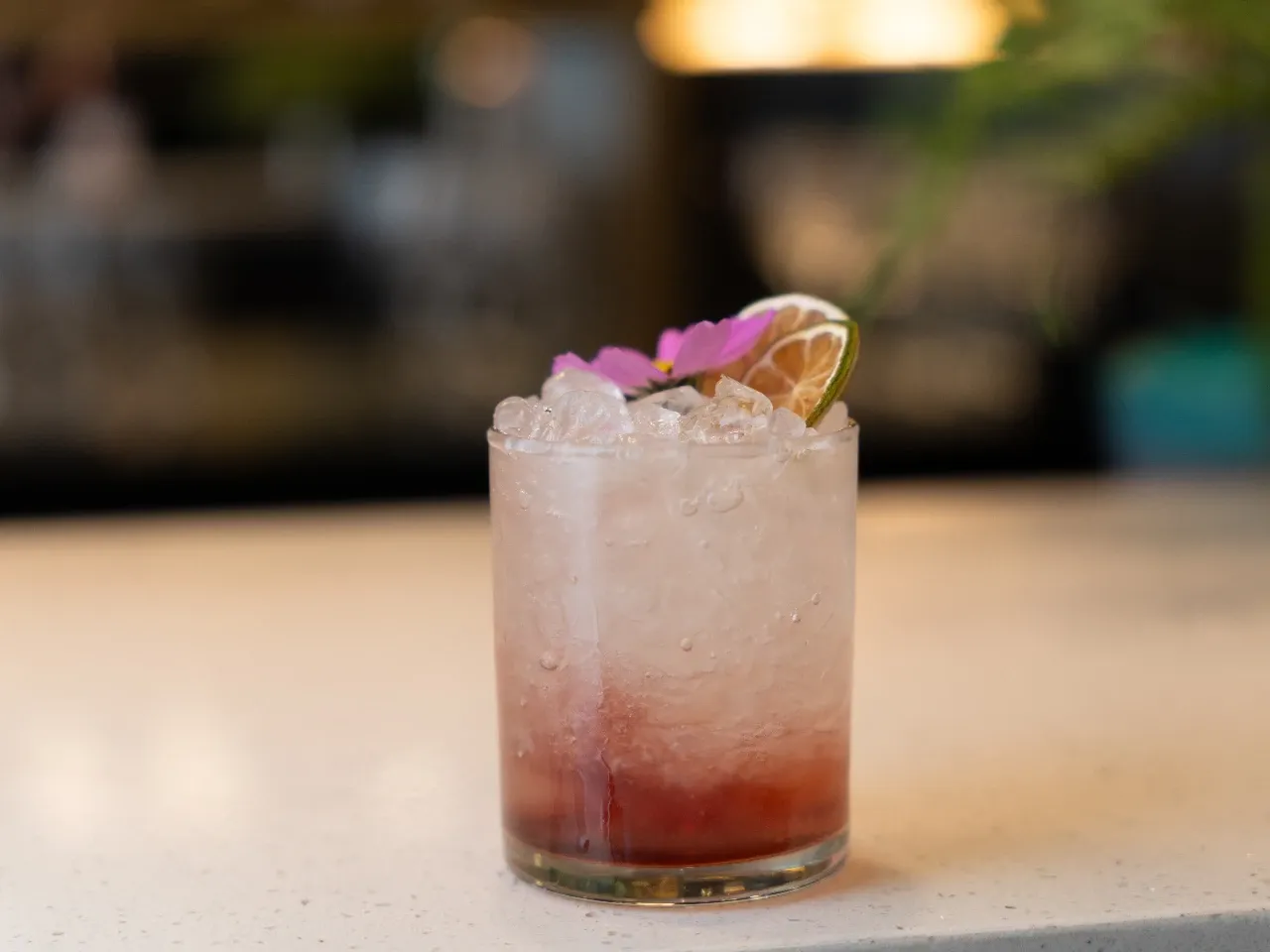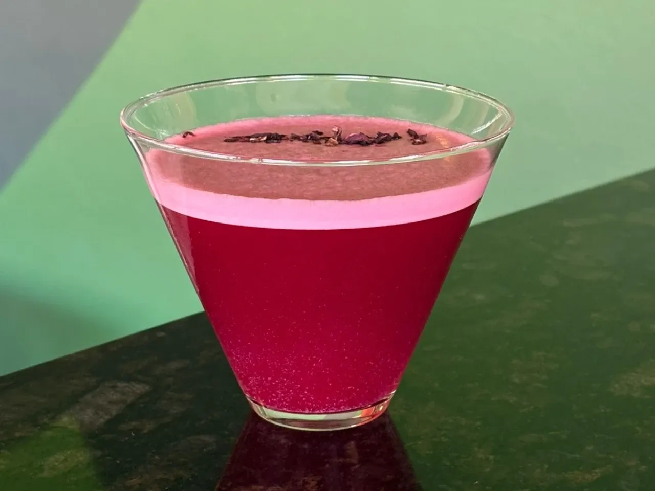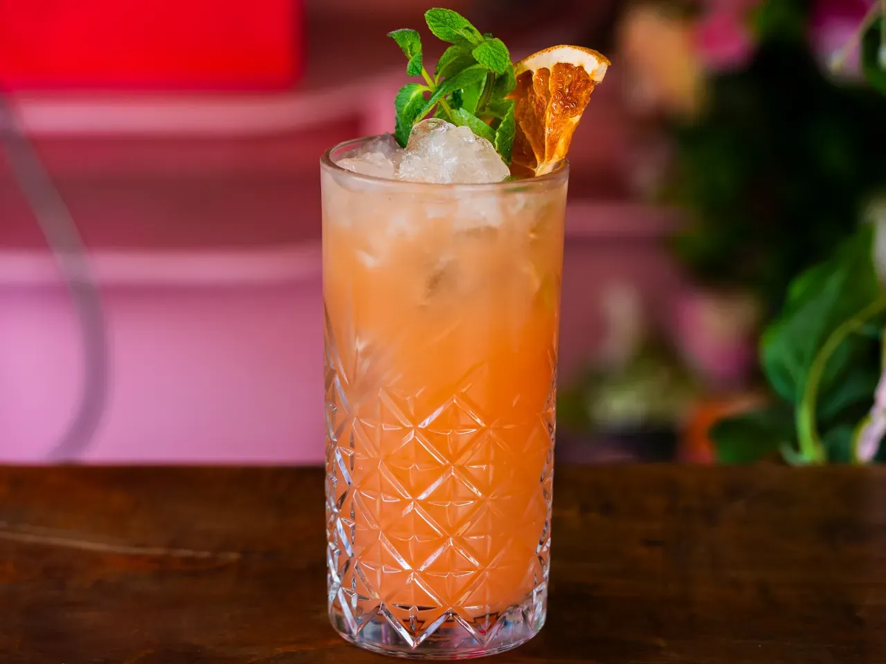 Intenso y refrescante, Pisco y tequila con hibiscus y pomelo en un cóctel muy particular que evoca un característico paloma