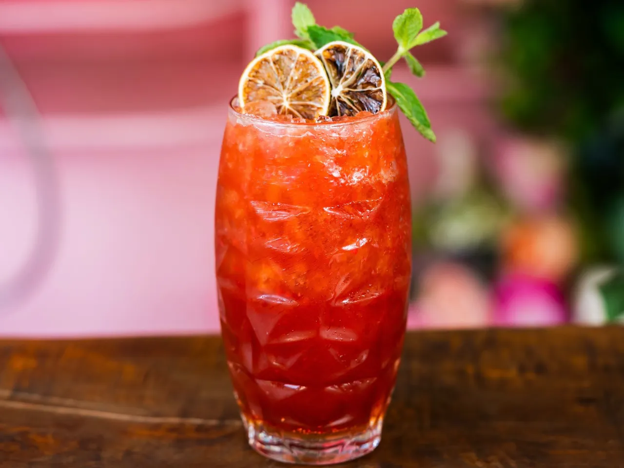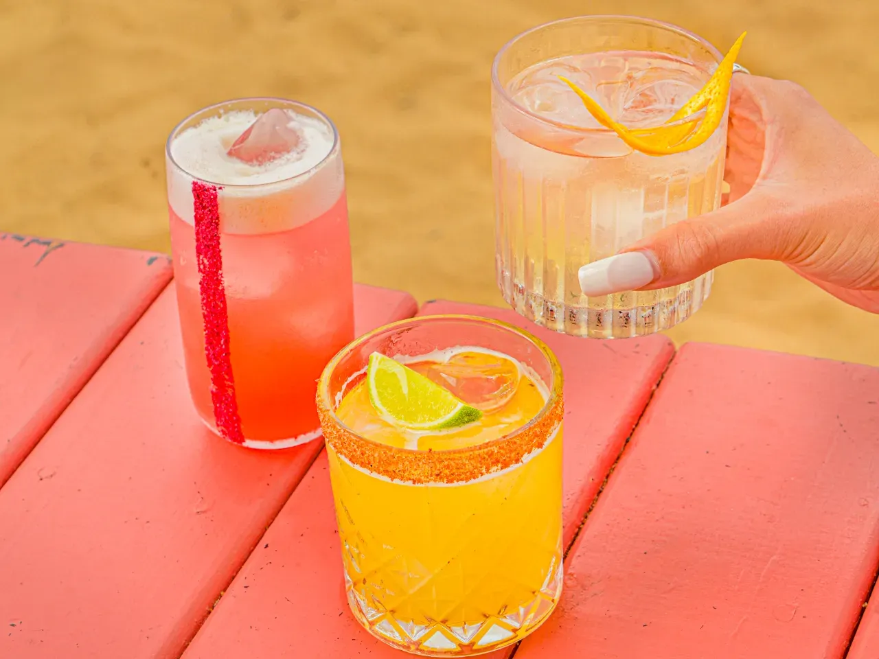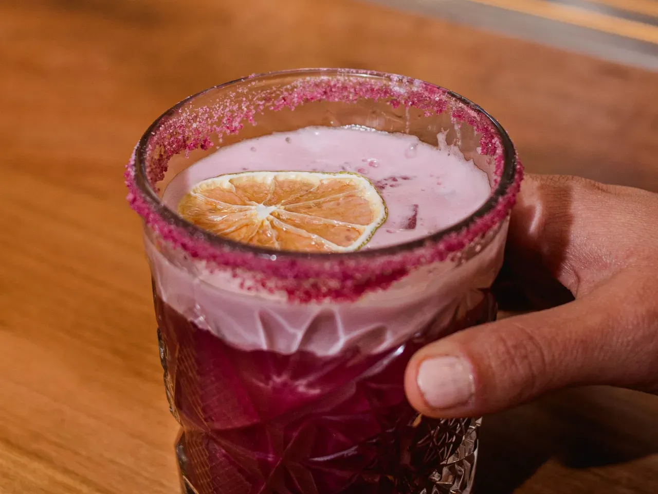 Intenso y refrescante, Pisco y tequila con hibiscus y pomelo en un cóctel muy particular que evoca un característico paloma