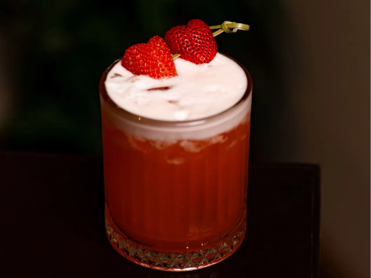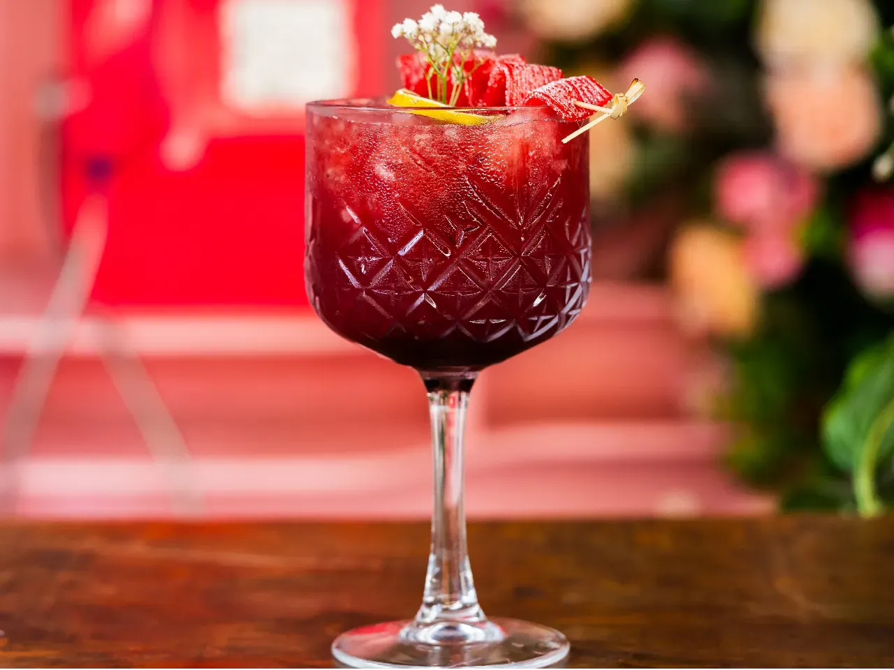 Gin pink, ramazzotti, goma y pulpa de frutilla