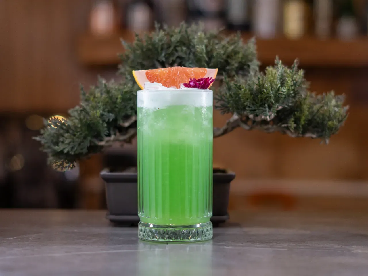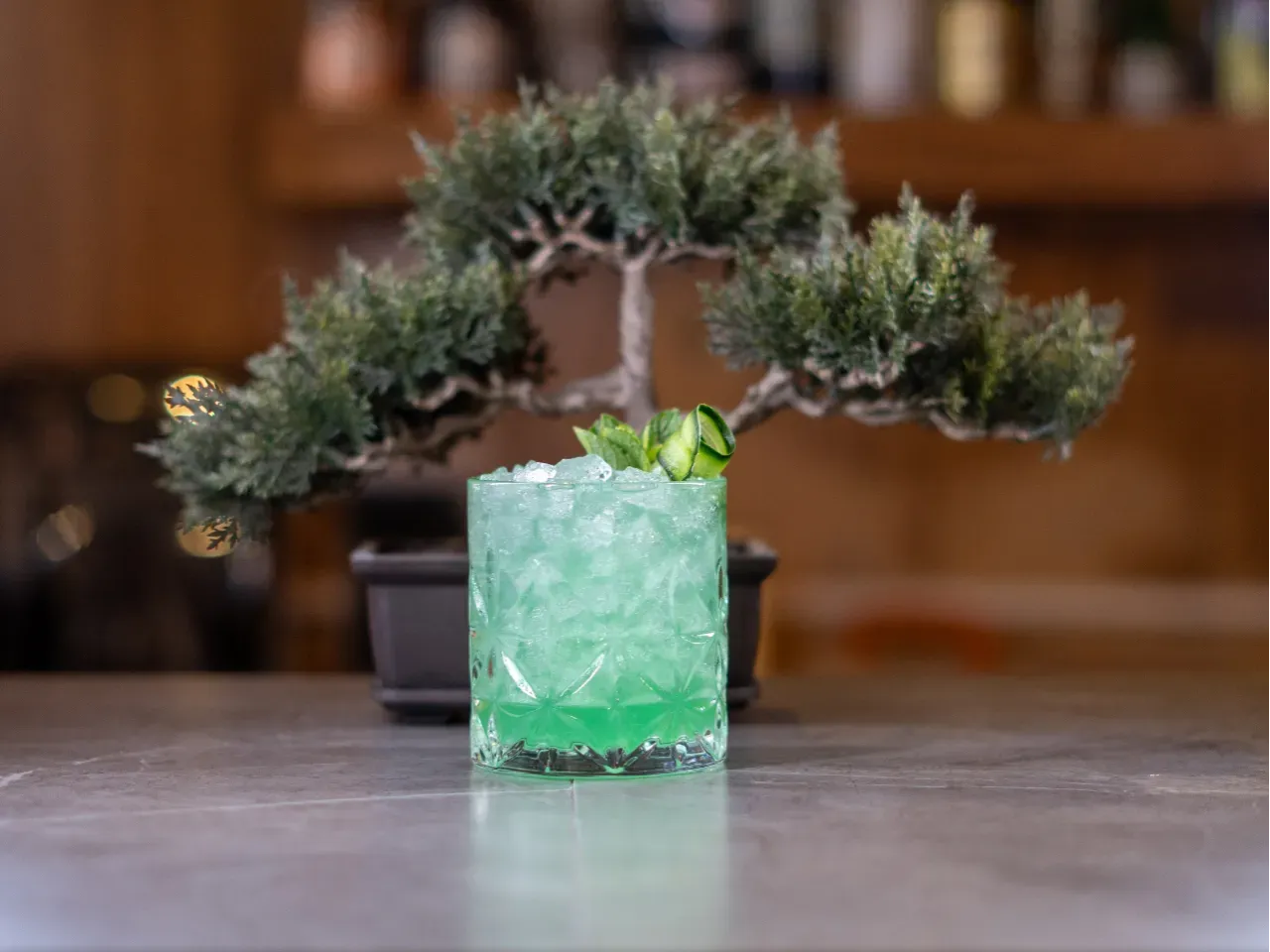 Ligero y refrescante. Whisky, yuzu y lemongrass con soda de eucalipto y un delicado toque herbal.
