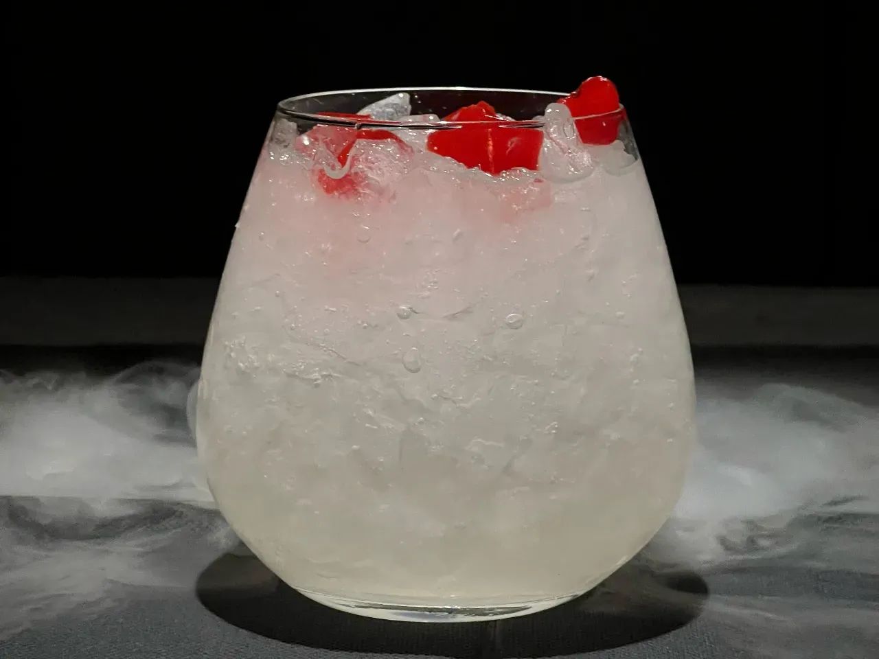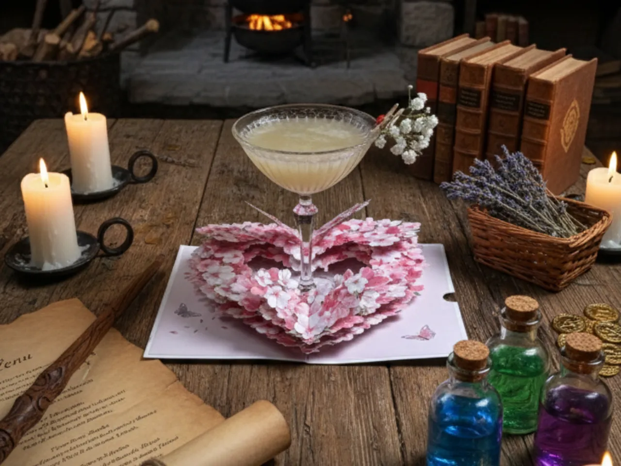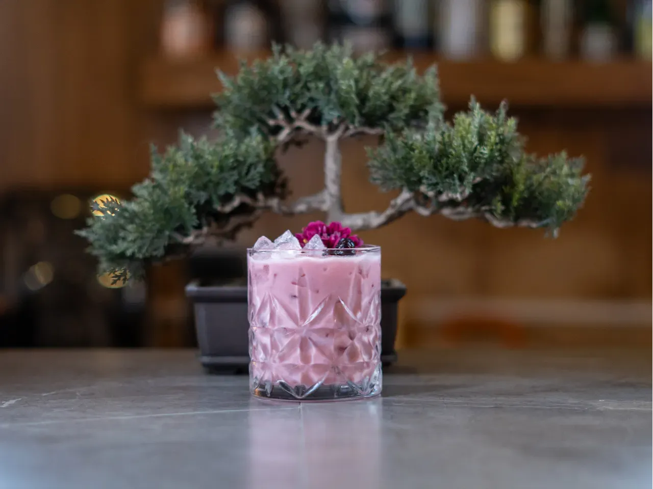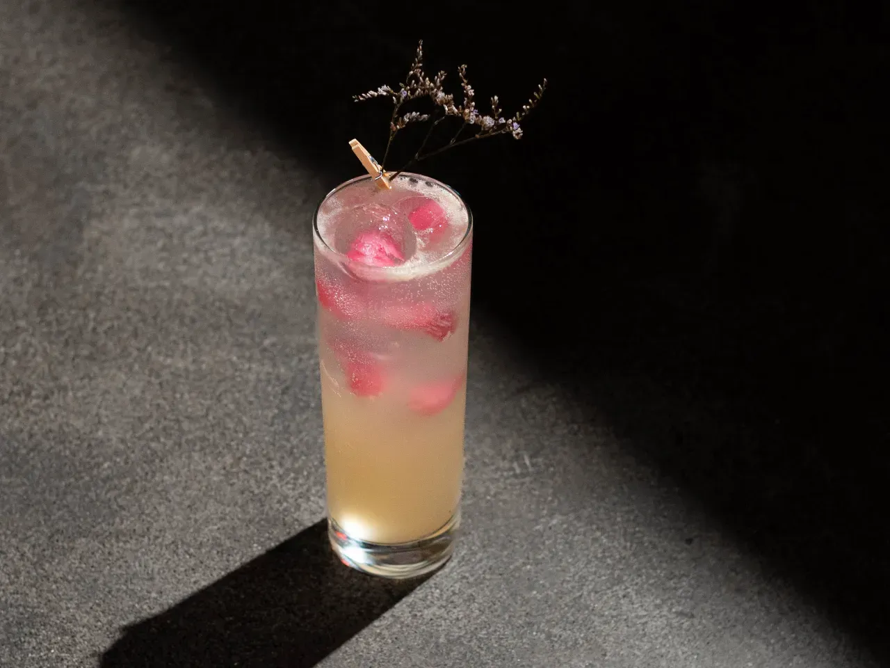 Un spritz encantado donde un licor casero de cerezas se mezcla con sirup coreano de frambuesa, un toque de llicor de marrasquino y burbujas de espumante brut. Fresco, frutal y brillante, como una pequeña poción chispeante lista para desatar su encanto.