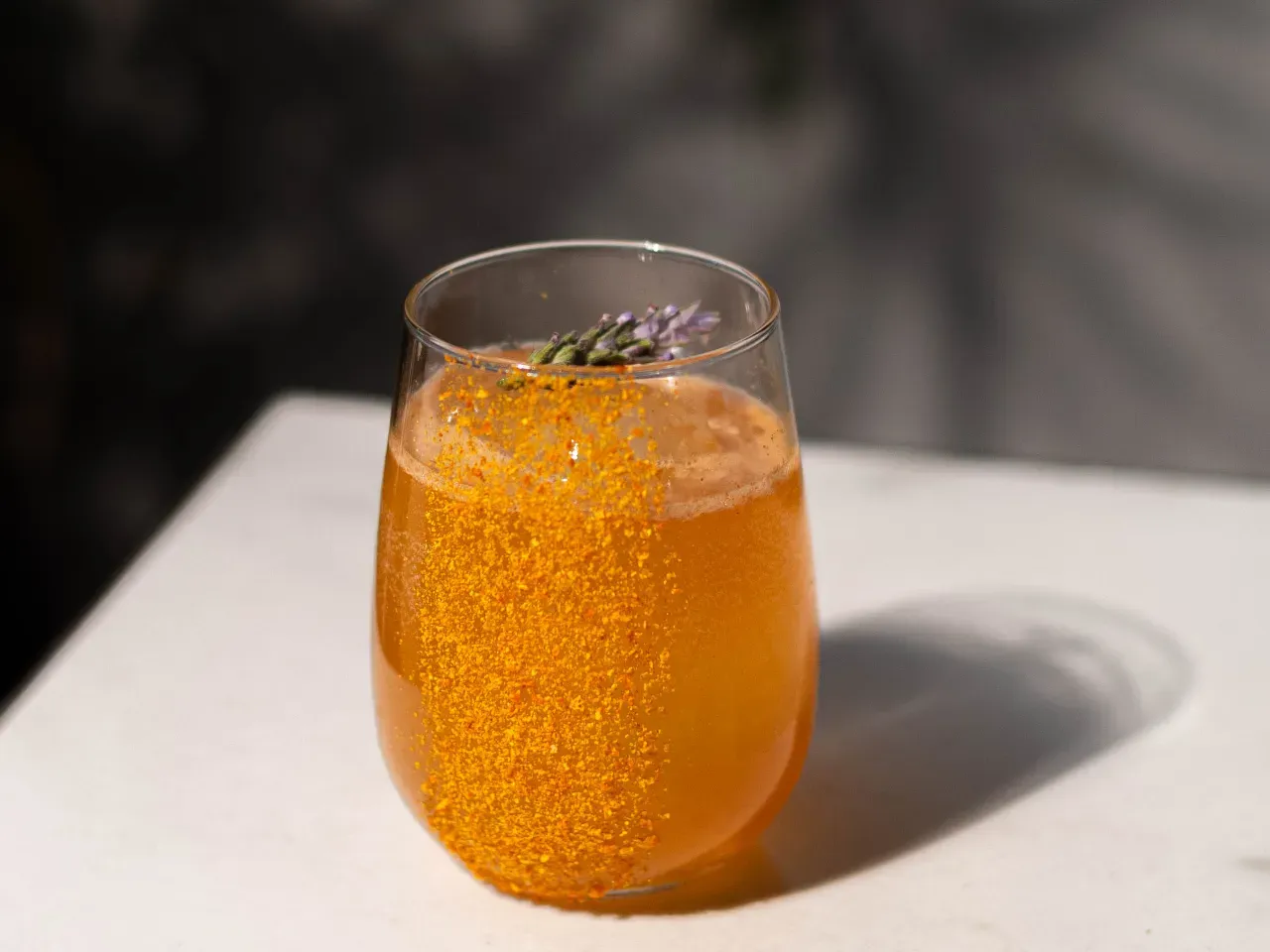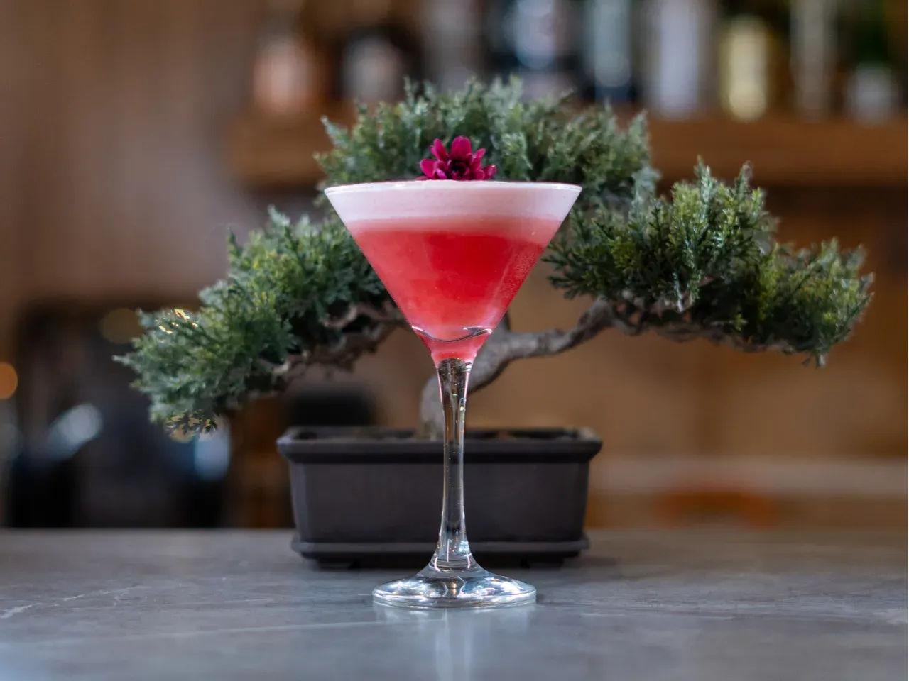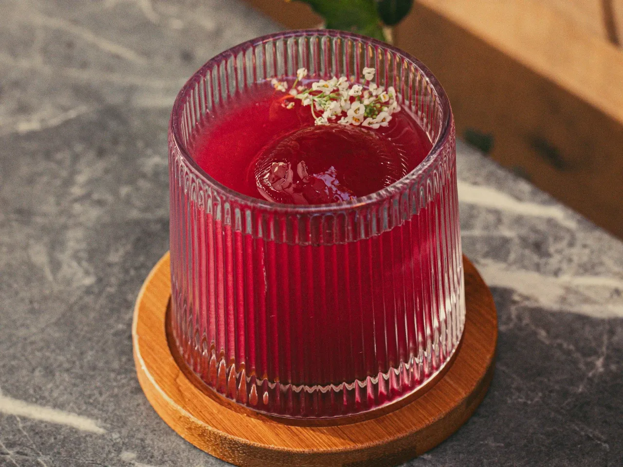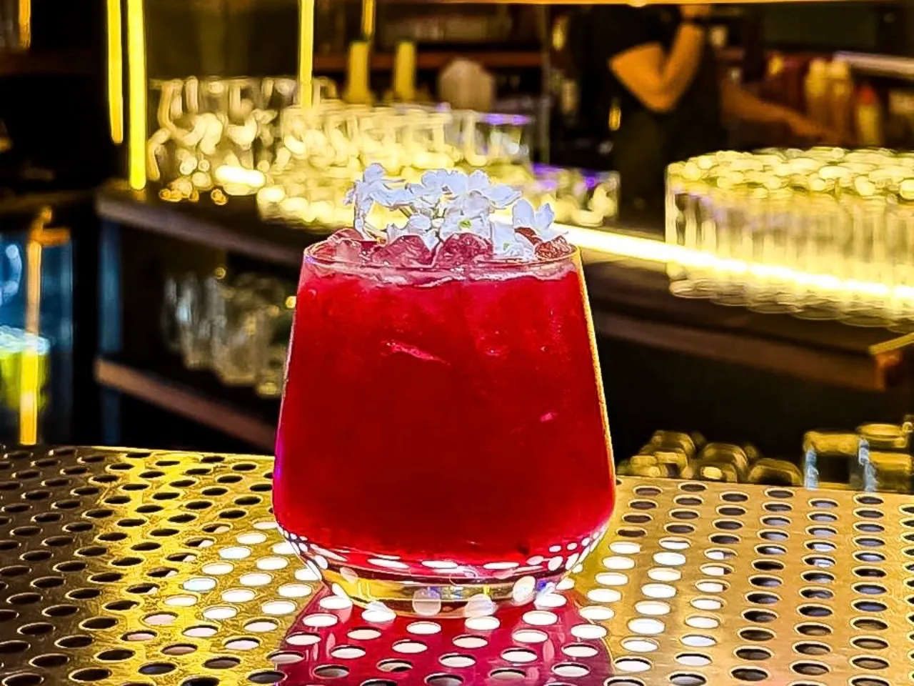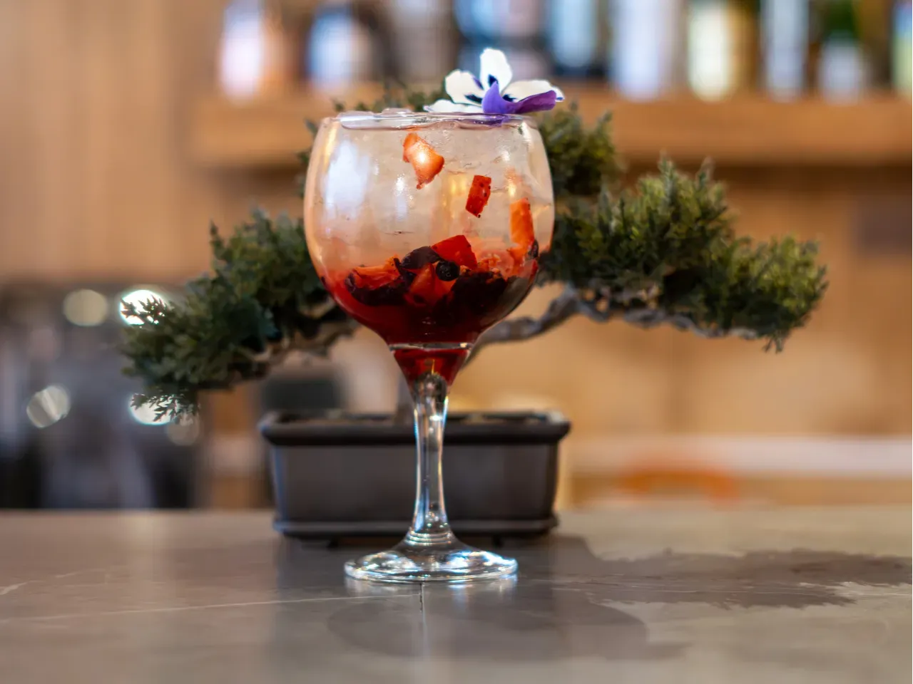 Un spritz encantado donde un licor casero de cerezas se mezcla con sirup coreano de frambuesa, un toque de llicor de marrasquino y burbujas de espumante brut. Fresco, frutal y brillante, como una pequeña poción chispeante lista para desatar su encanto.