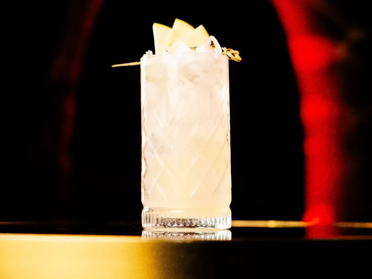 Johnnie Walker Blonde, cordial de peras al Chardonnay, zumo de limón, Ginger ale.