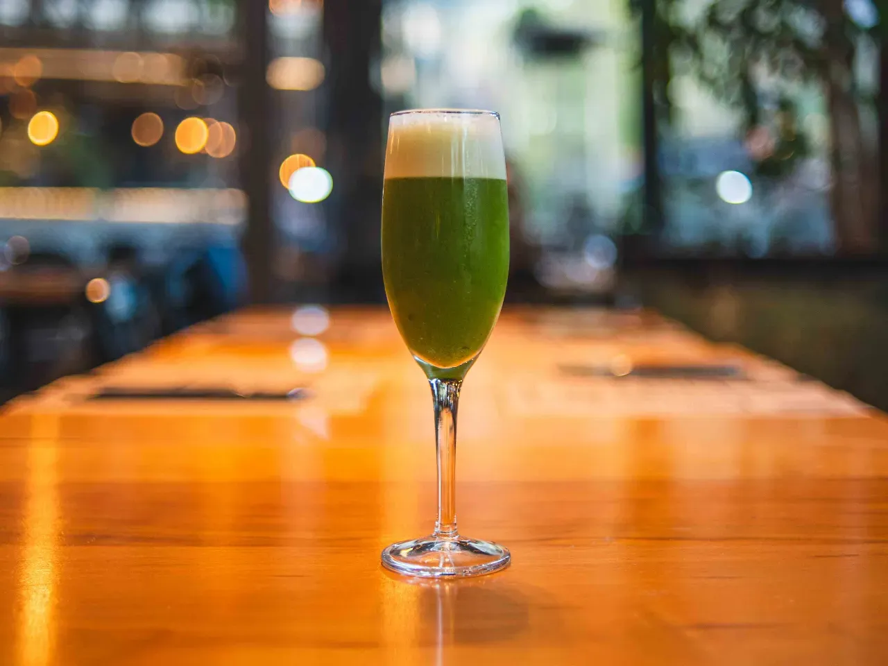 Cóctel a base de gin Tanqueray london dry, oporto, syrup de kiwi, jugo de apio, zumo de limón y zumo de pomelo.