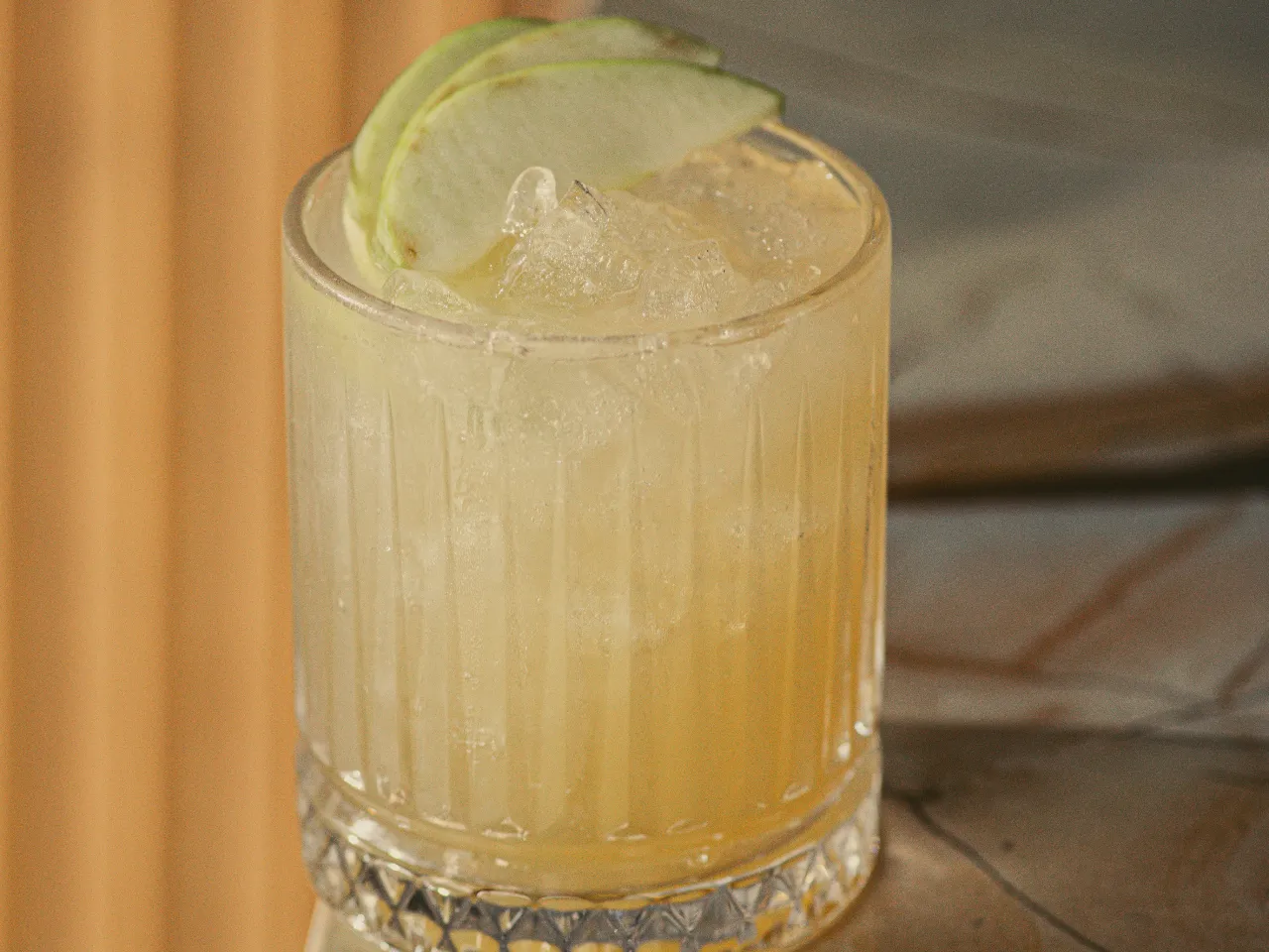 Vodka, licor de manzana, syrup de canela, limón y agua de jengibre.