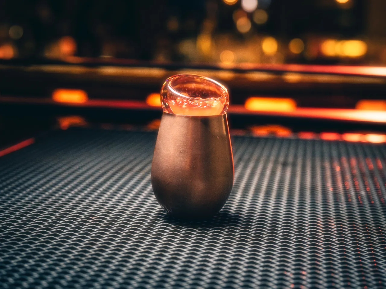 Robusto cóctel de autor preparado con Mistral Nobel Fire y pisco Mistral 35°, Fernet Branca, infusión de manzanilla, limón sutil & terminado con Red Bull Original.