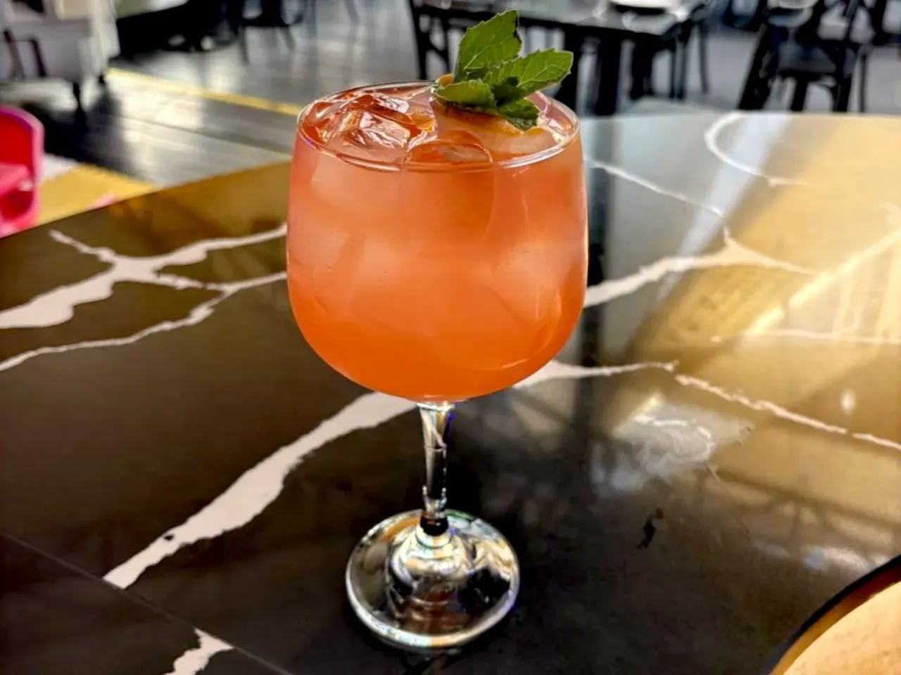 Cordial de melón tuna, vodka, espumante, agua con gas y gotas de amargo de angostura (Dulce y Fresco)