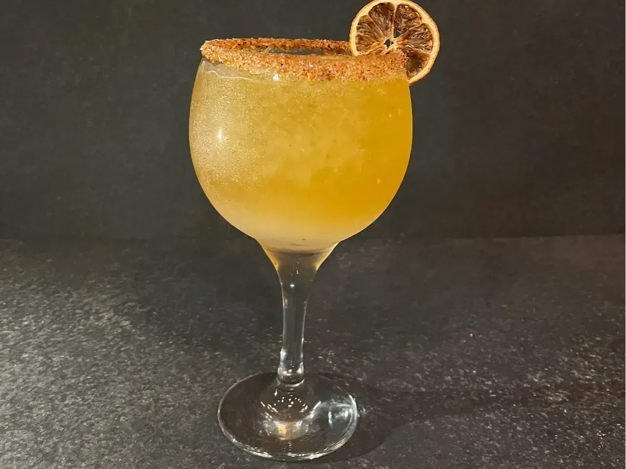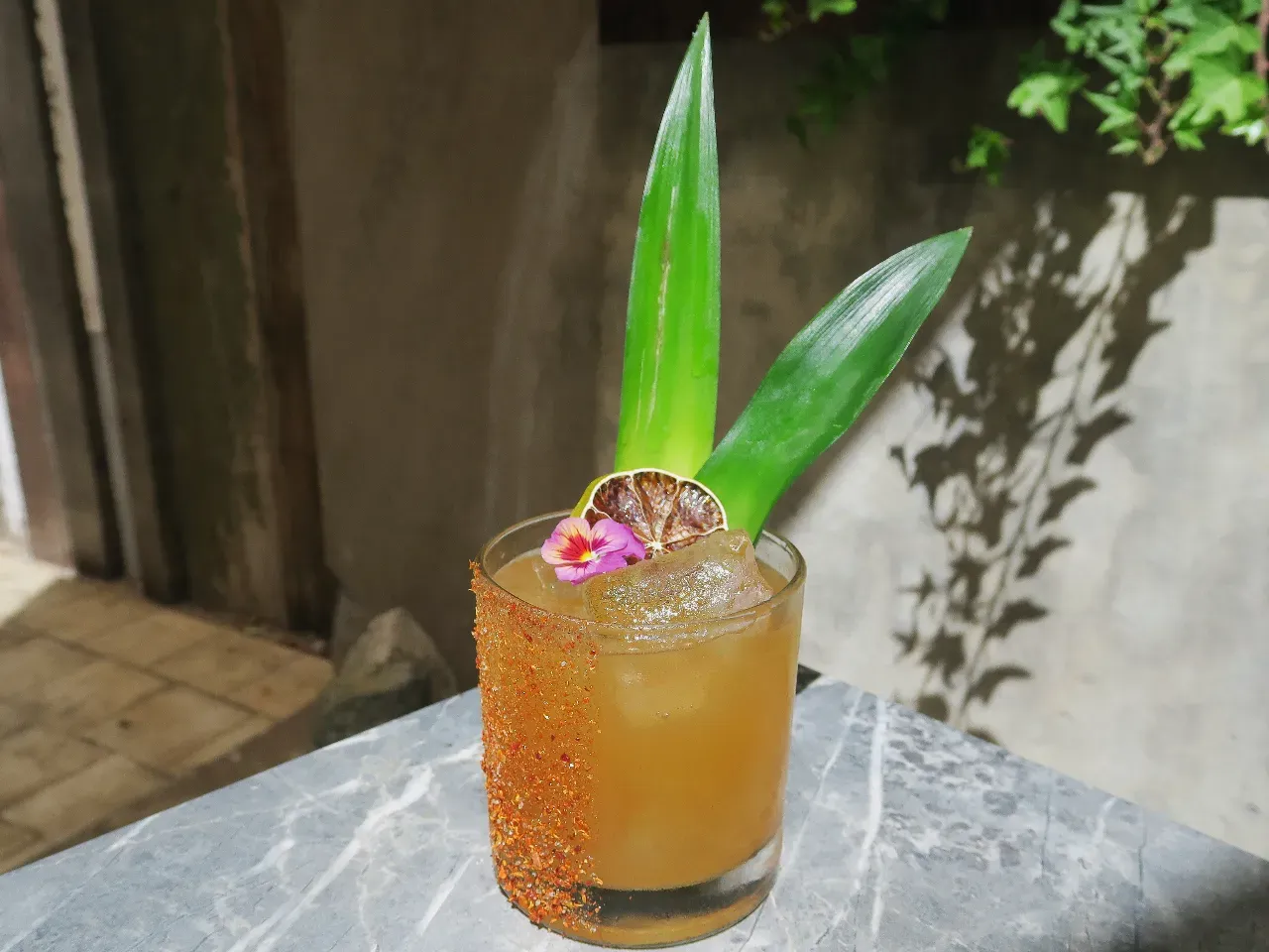 Mezcal San Cosme, Cointreau, pomelo, syrup picante y sal cítrica de naranja