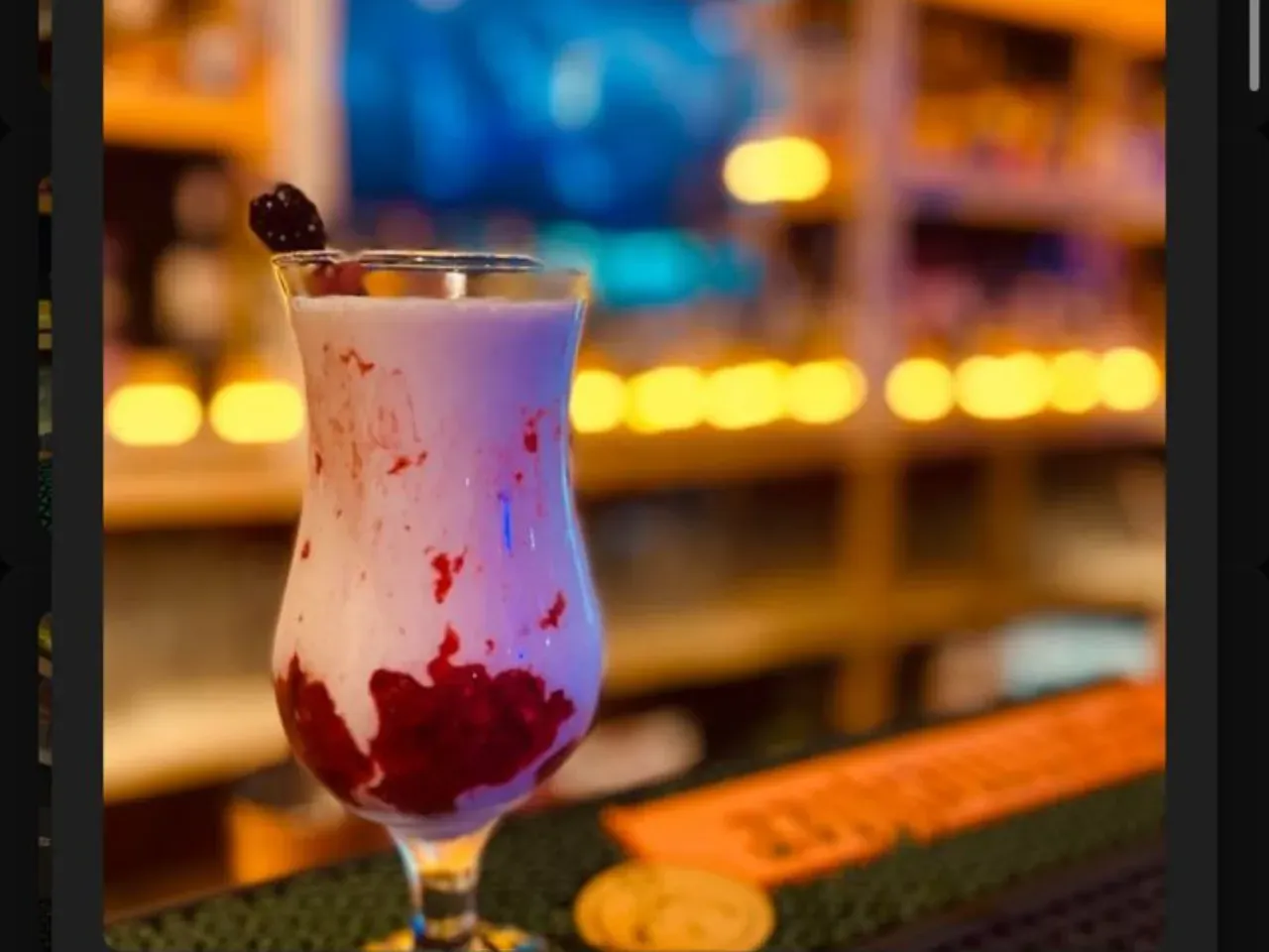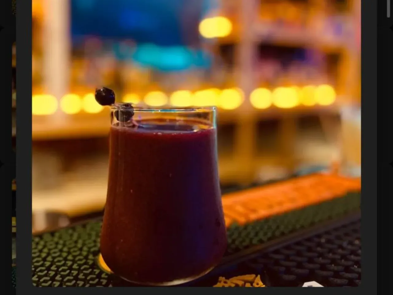 Ron Añejo Flor de Caña, Chambord, Syrup de Syrah, Jugo de Frambueza, Jugo de Limón. Quieres probar nuestras bombillas comestibles? Limon de pica, Frutilla, Chocolate (+$1.000)