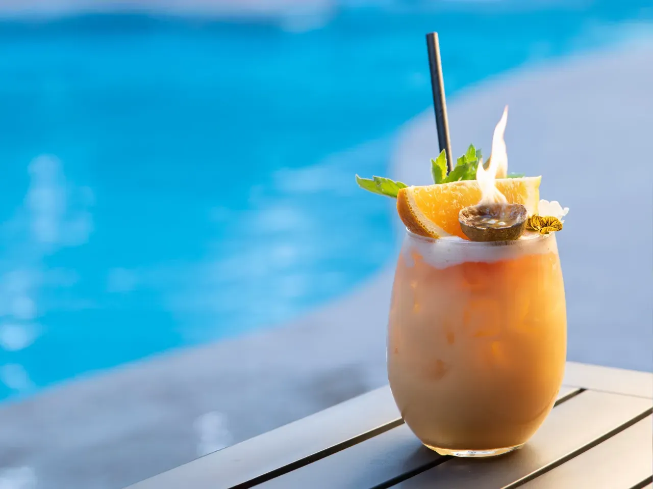 Ron dorado Havana Club y Malibu de coco se funden con piña y maracuyá en una base tropical intensa y seductora. El amaretto Disaronno aporta profundidad almendrada, mientras sutiles notas de vainilla envuelven el final. Exuberante, cálido y delicadamente persistente.