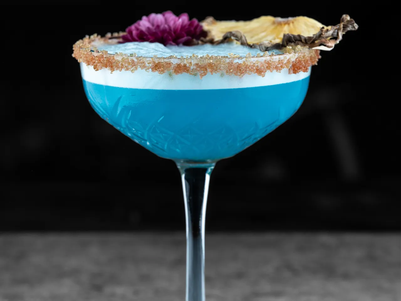Un hechizo líquido de pisco, Jerez y jarabe de té de bergamota, un cóctel que captura la esencia de los oscuros y misteriosos, dejando un toque intrigante en el paladar.
