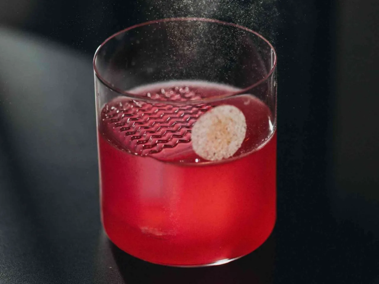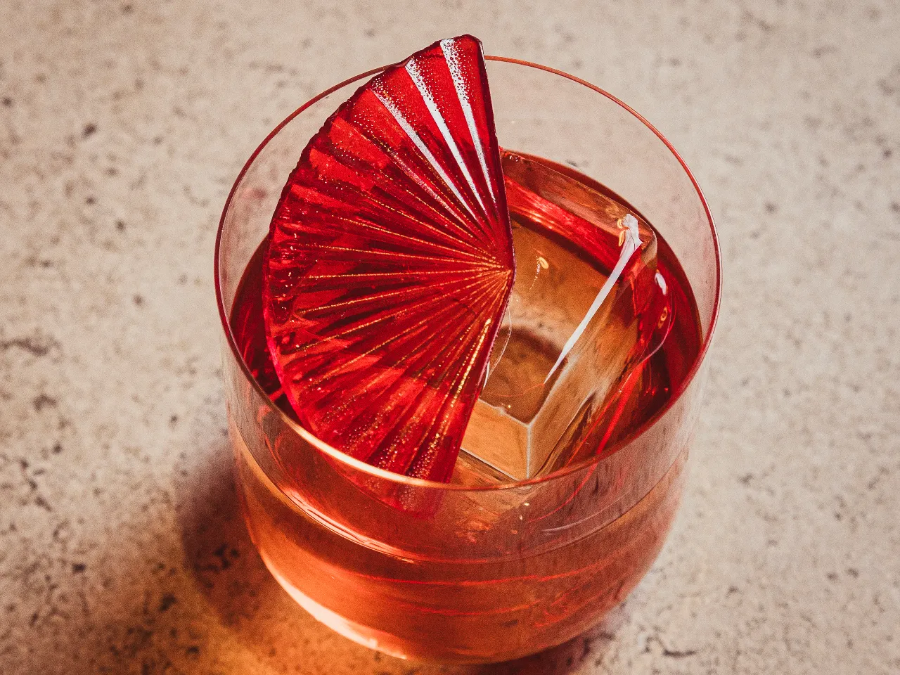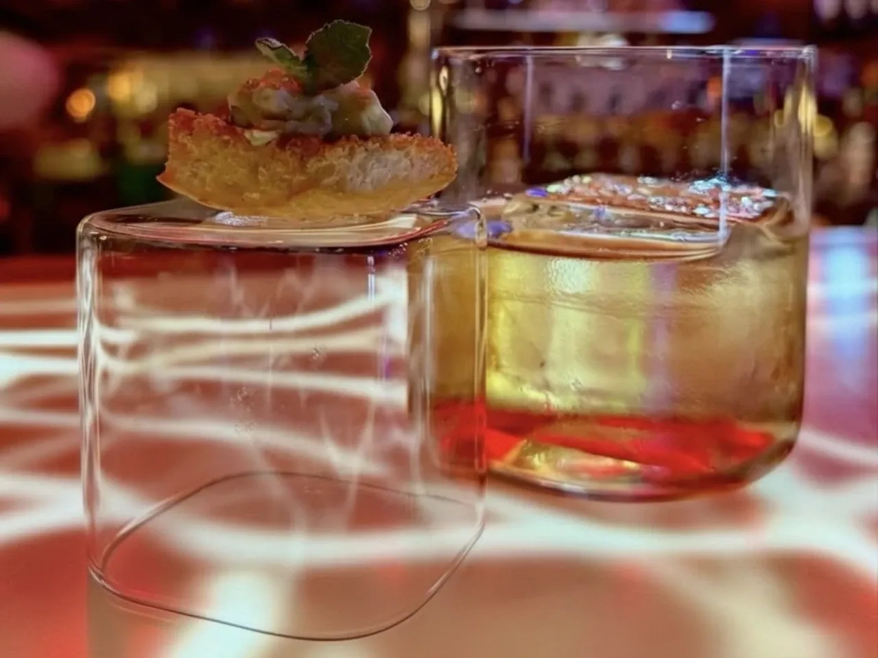 fortificados, Campari y licor de saúco unidos en una gelatina firme y amarga-floral que convierte el cóctel en una experiencia comestible.