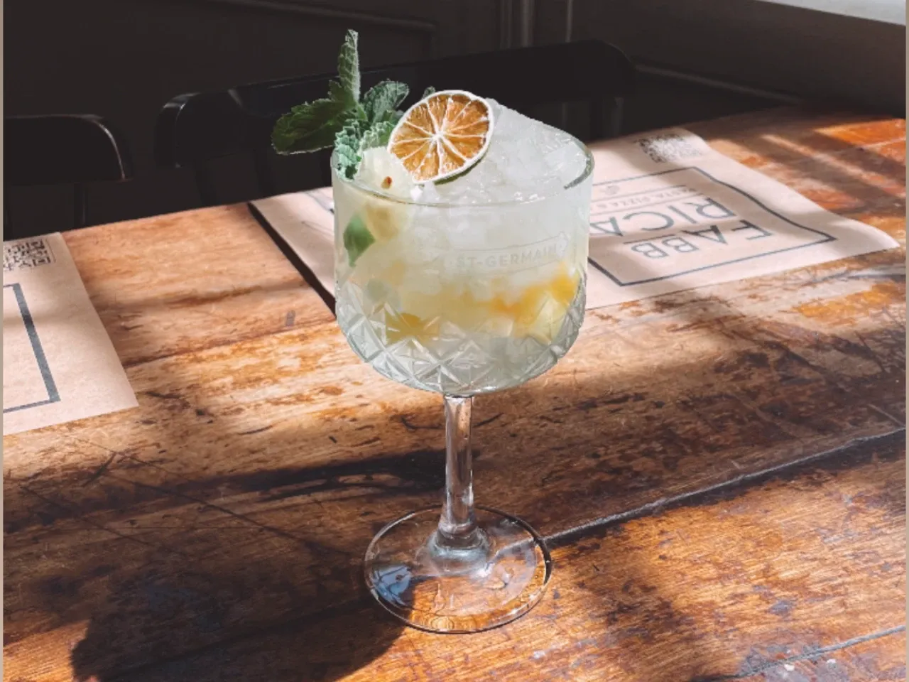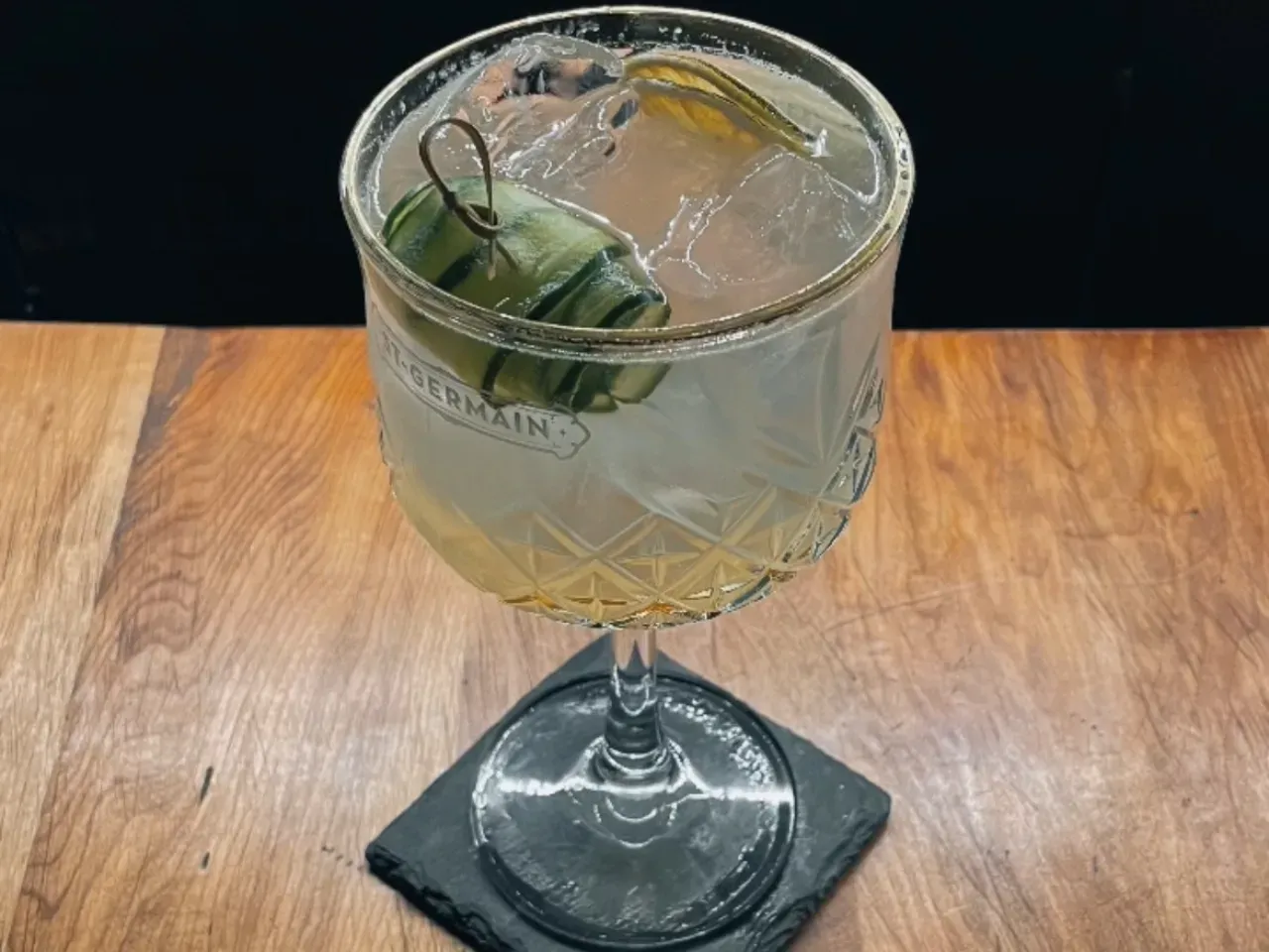 Coctel a base de gin Tanqueray london dry, St Germain, jugo de pepino, miel de agave, zumo de limón y espumante.