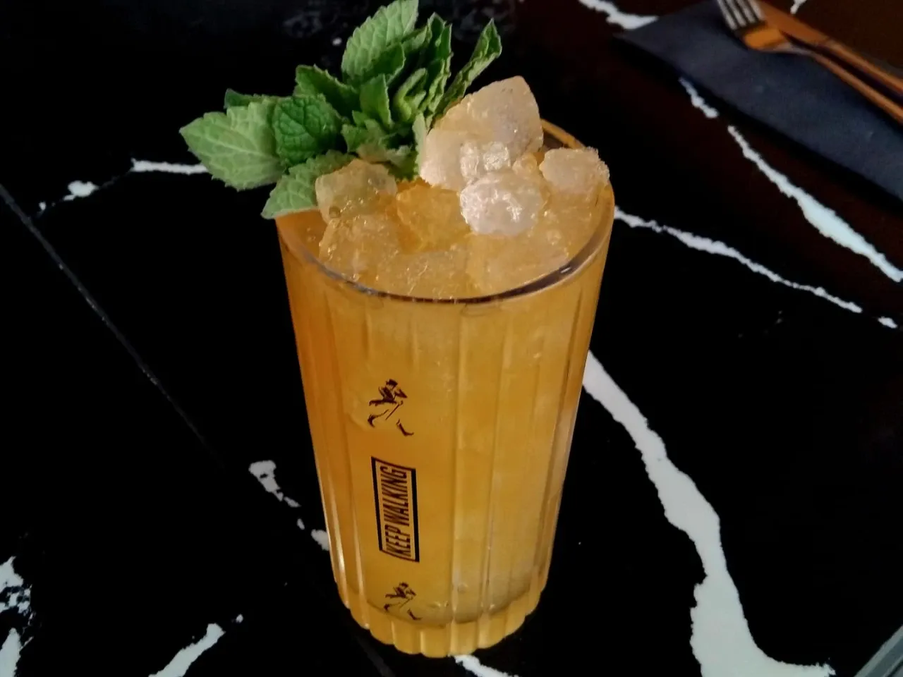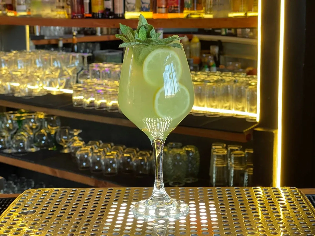 Jägermeister, menta, syrup, limón y soda.