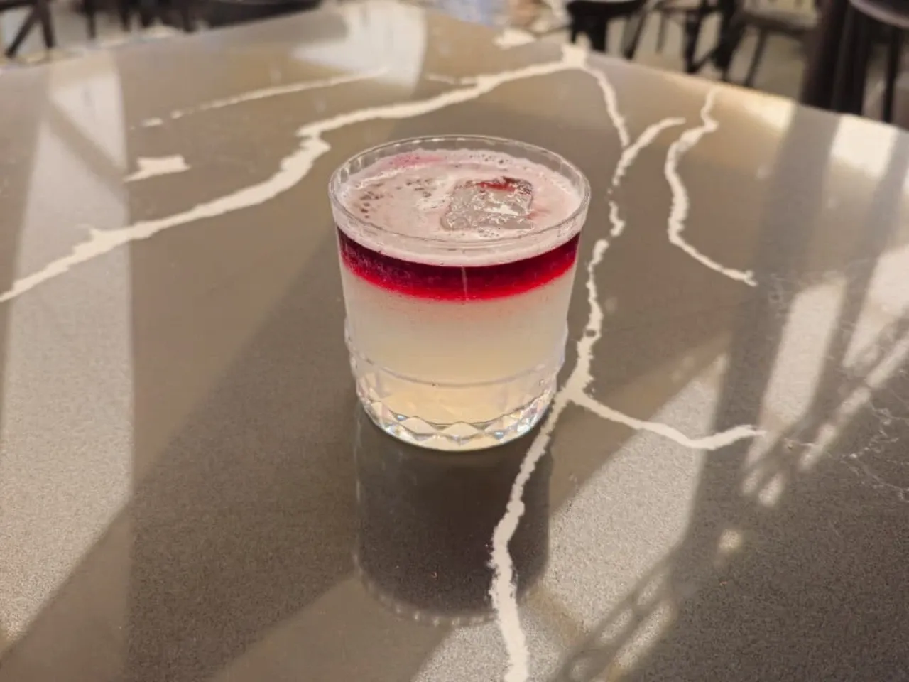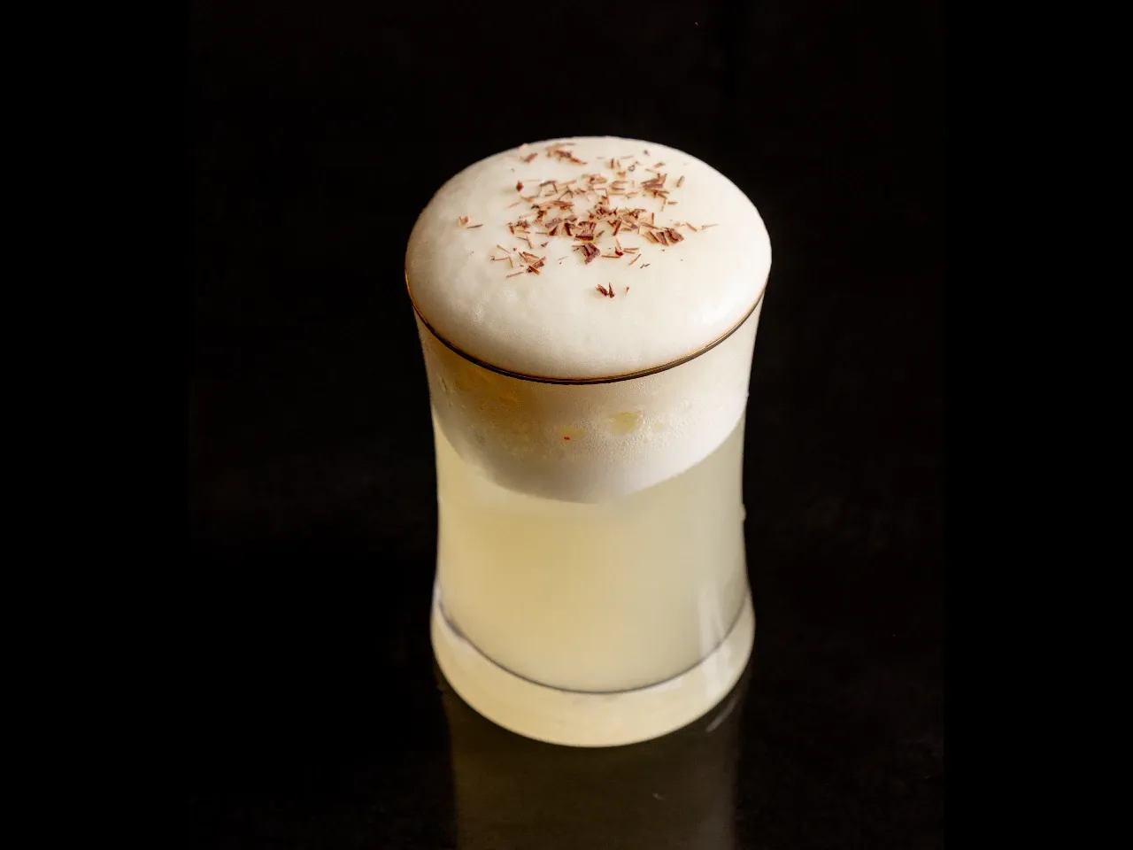 Destilado de uva Viñas de Oro Quebranta Mosto Verde, syrup, jugo de limón, albúmina y amargo de Angostura
