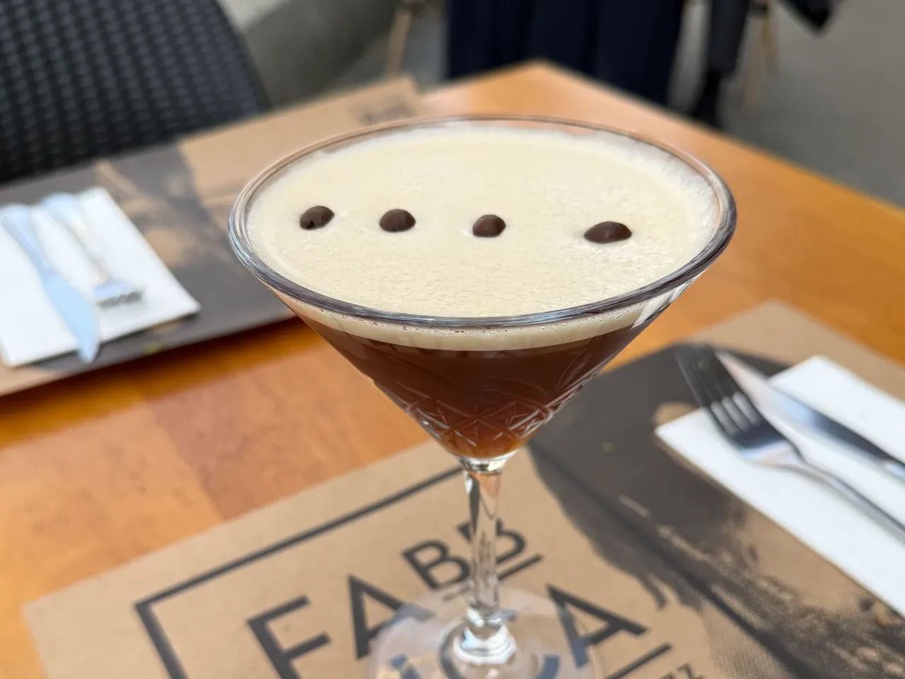 Reversión de Clásico Espresso Martini Vodka fat-wash con pasta de miso y durazno nectarín, notas tostadas de sésamo. Acompañado de un shot de café y licor de café. Equilibrio entre dulzor, tostado y profundidad.