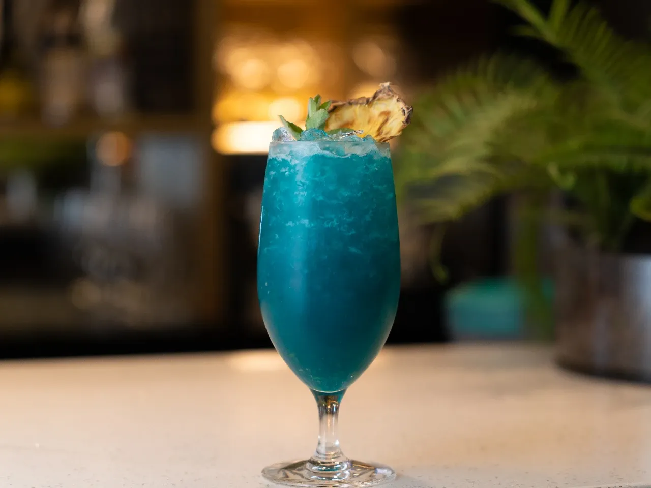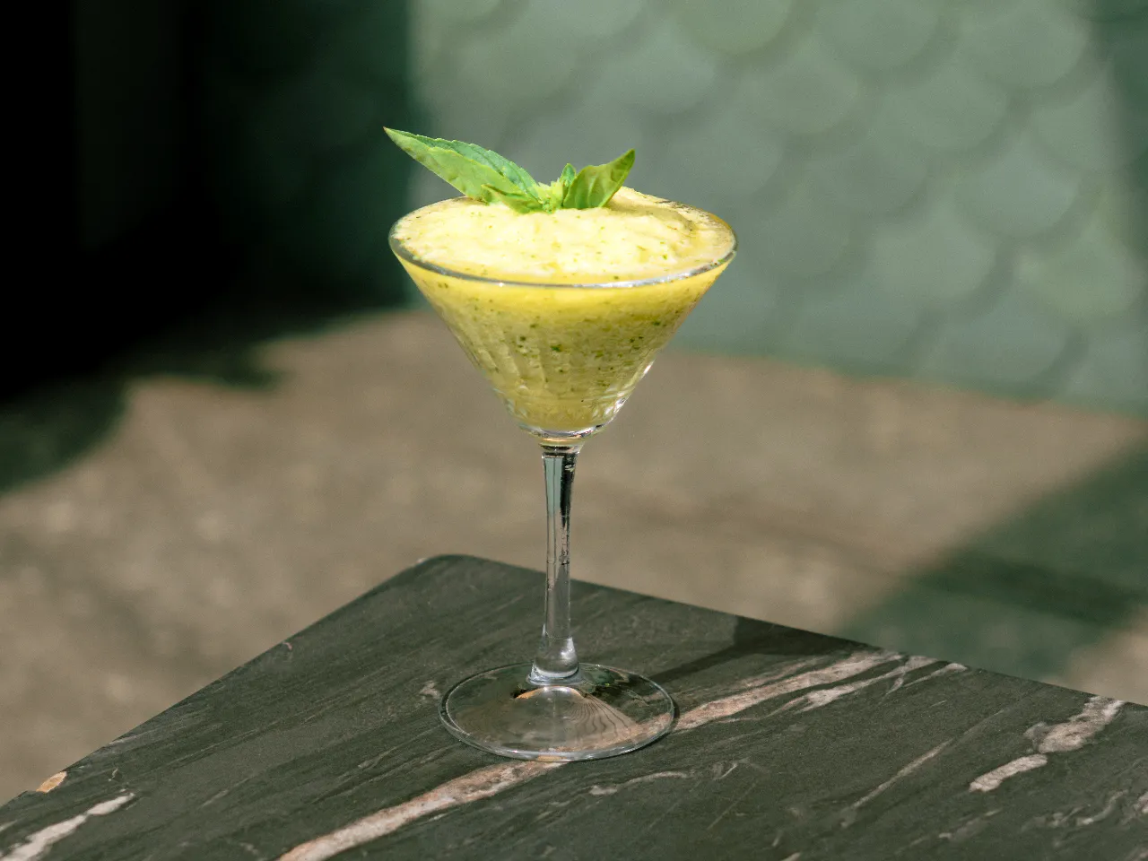 Jardín del Pisco: pisco Espíritu, pulpa de piña, limón sutil,hojas y aceite de albahaca.