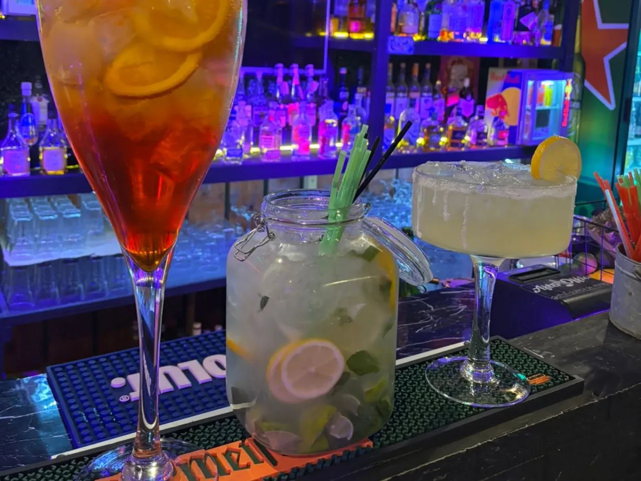 Ron de coco Bacardi , curacao , limon.