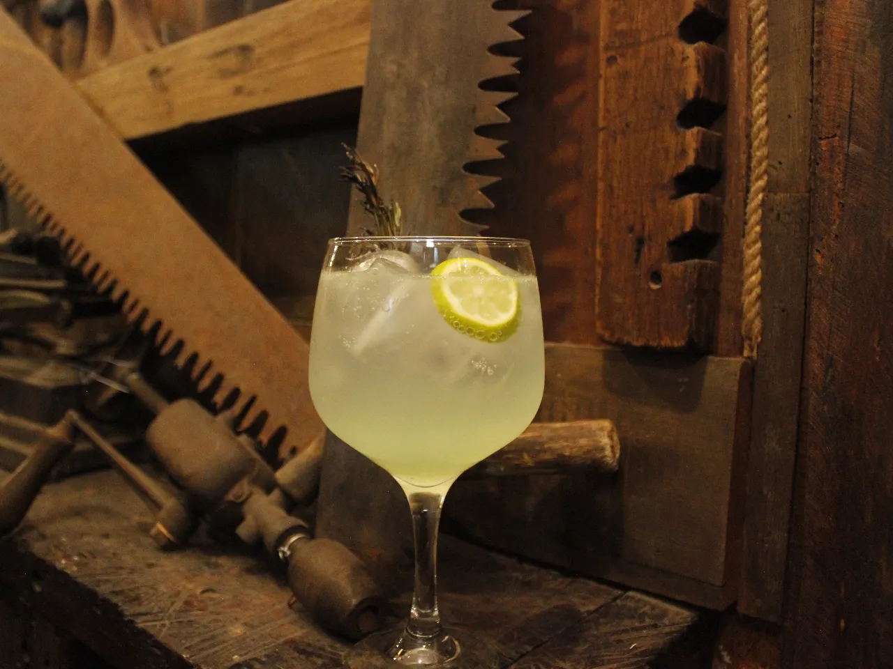 Jagermeister Manifest, St-Germain, toque de limon, jengibre y terminamos con ginger beer