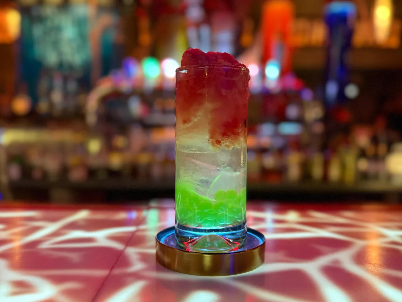 Una mezcla intrigante de licor de melón, Gin London Dry, tónica y perlas de tapioca de melón, evocando la sensación de una prisión mágica con cada sorbo refrescante.