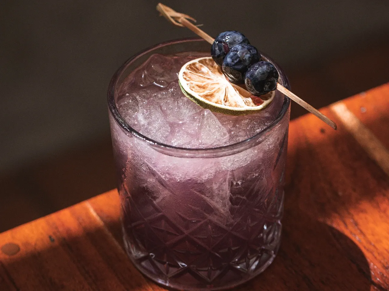 Cóctel a base de pisco, arandanos macerados en chupilca, mix de berries, tintura de bergamota, zumo de pomelo, zumo naranja y zumo de limón.