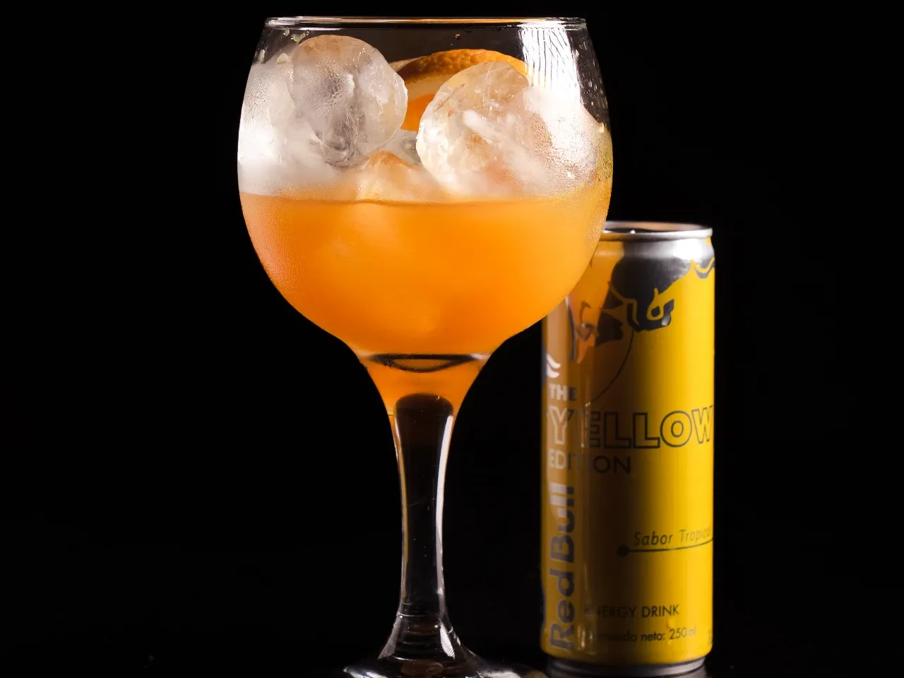 Gin y Red Bull Yellow Edition y limón.