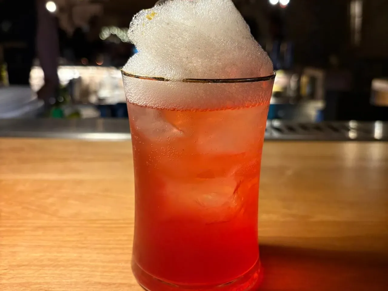 Cocktail a base de Tanqueray Sevilla con notas amargas , espumosas y frutos rojas