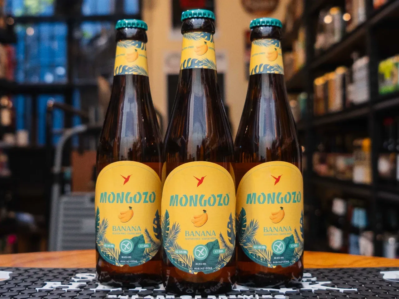 La Mongozo Banana en botella es una cerveza belga Fruit Beer sin gluten, dorada, con un intenso aroma y sabor a plátano maduro, dulce y afrutado, pero ligero y refrescante, con un 3.6% de alcohol. Se caracteriza por su base de ingredientes , ofreciendo una bebida exótica y suave.