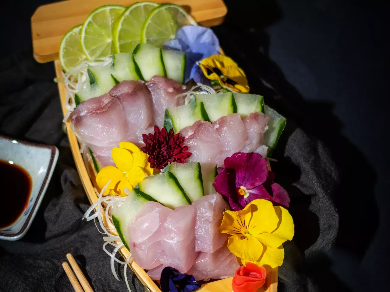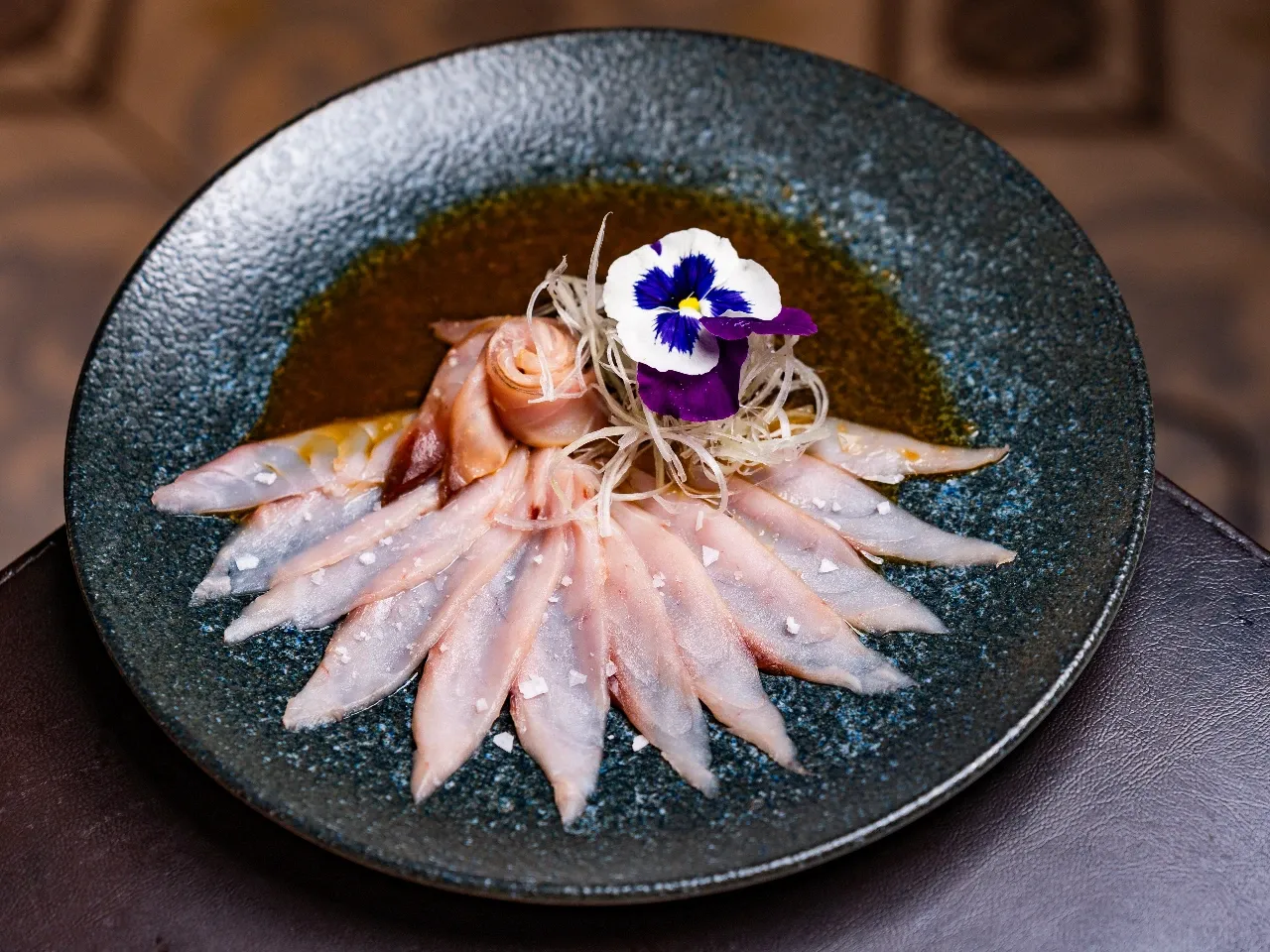 Finas láminas de pescado fresco, delicadamente cortadas y servidas con nuestra exclusiva salsa ponzu estilo Kintaro, realzadas con sutiles toques de sal en escamas y finas hebras de nabo.