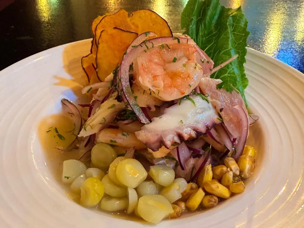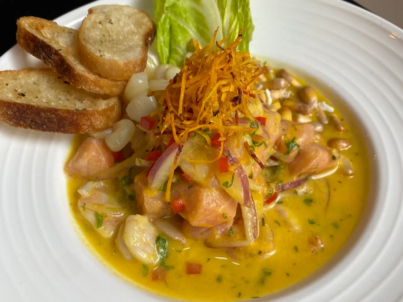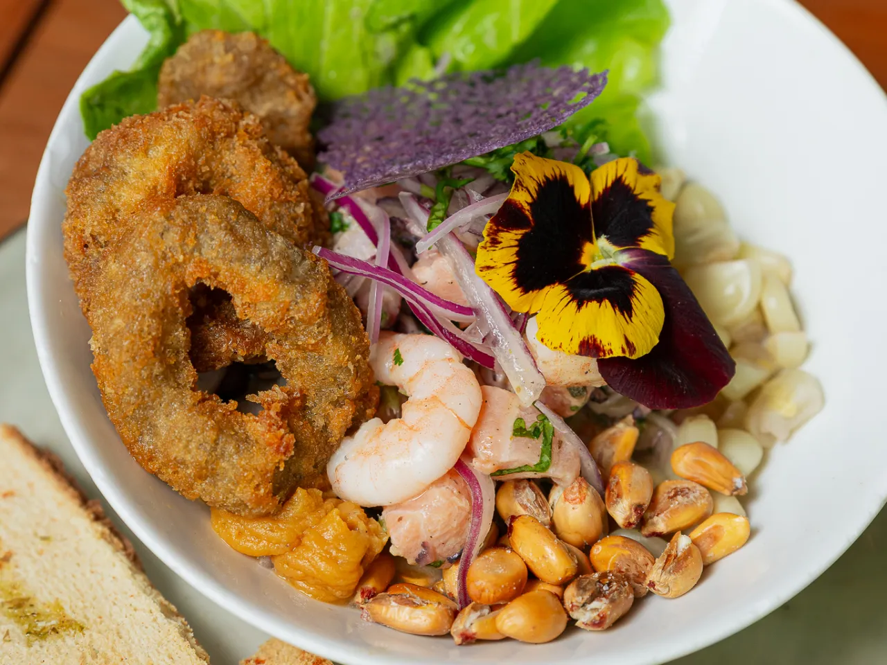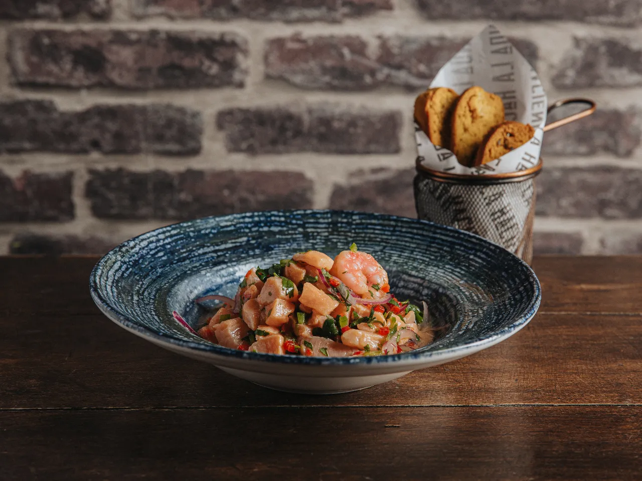 Un baile entre la reineta blanca y el camarón rosado, marinados en leche de tigre que marca el paso con su frescura. ¡Pura sasbrosura en el plato!