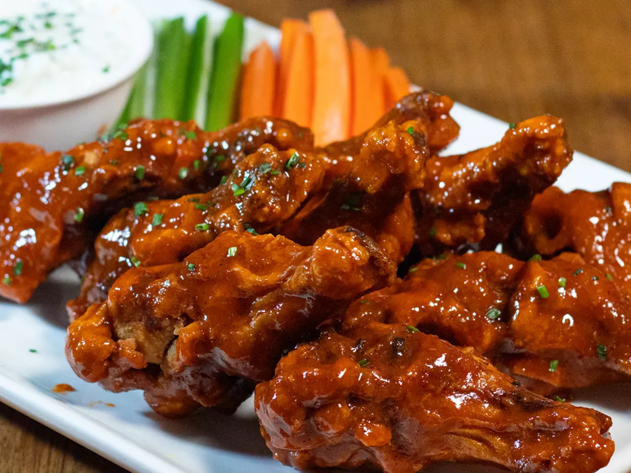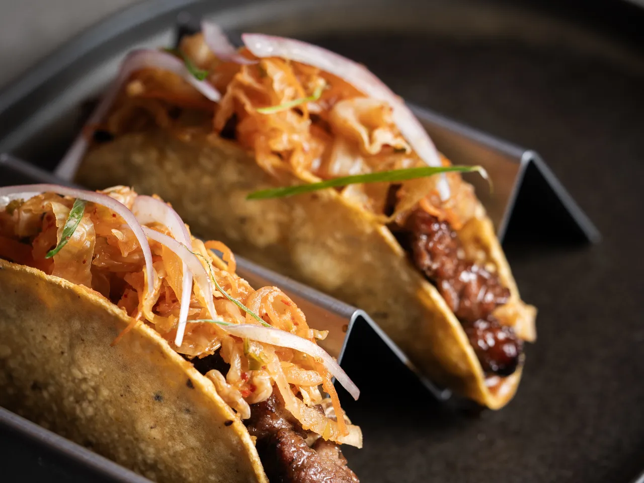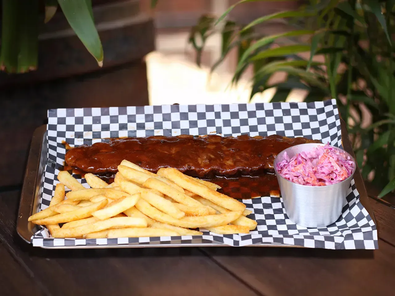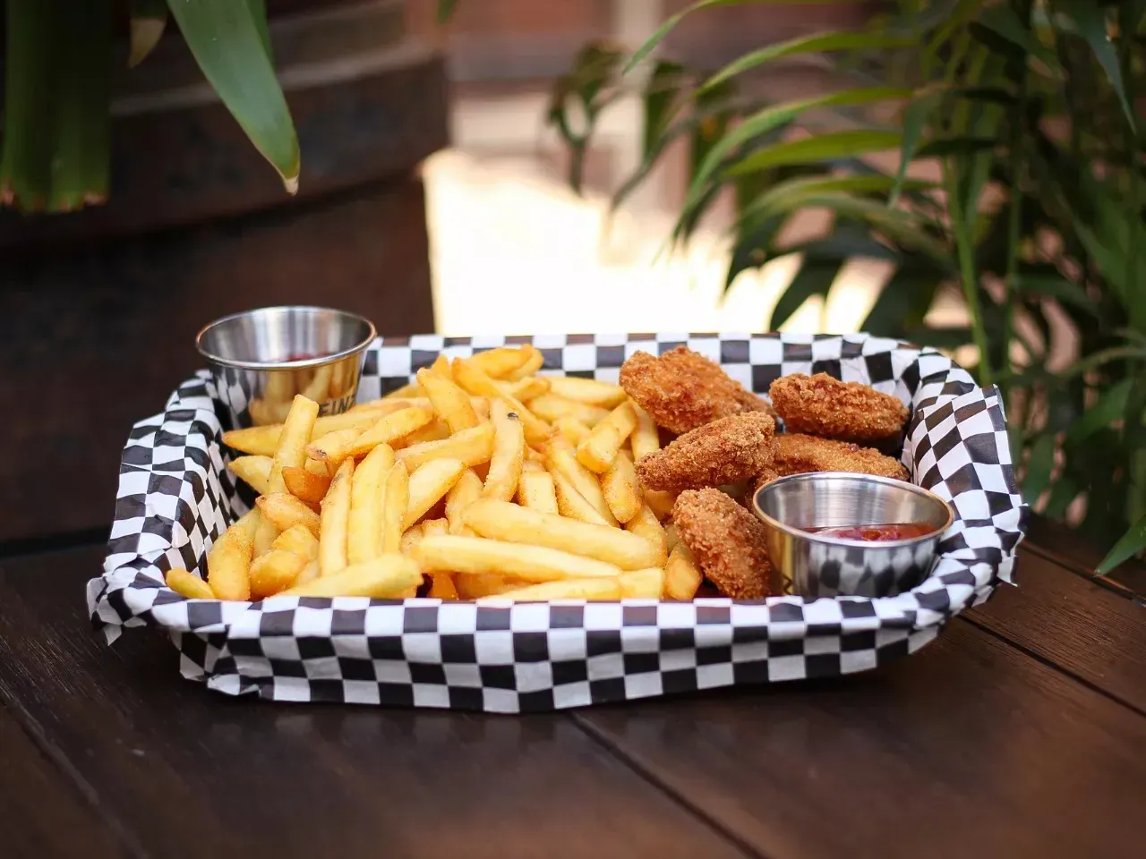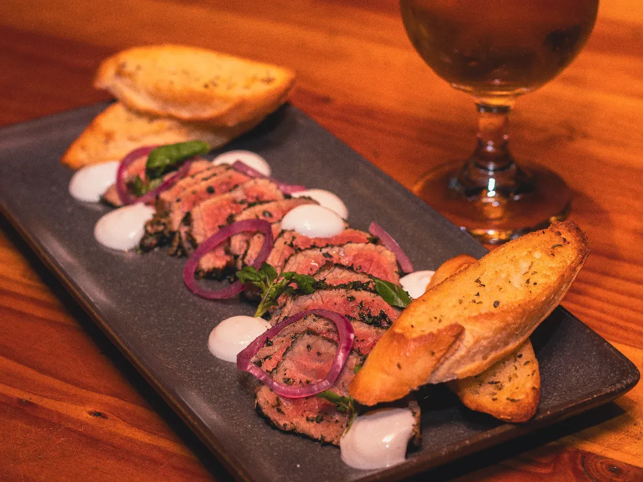 5 colosales aros de cebolla hechos a mano, apanados en panko acompañados de nuestra exquisita salsa agridulce Epicat y BBQ americano.