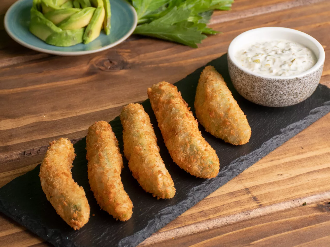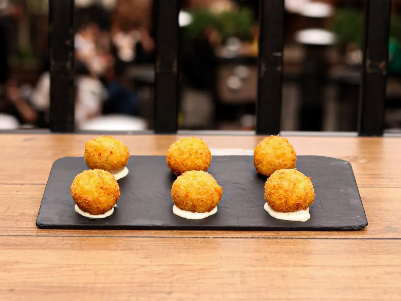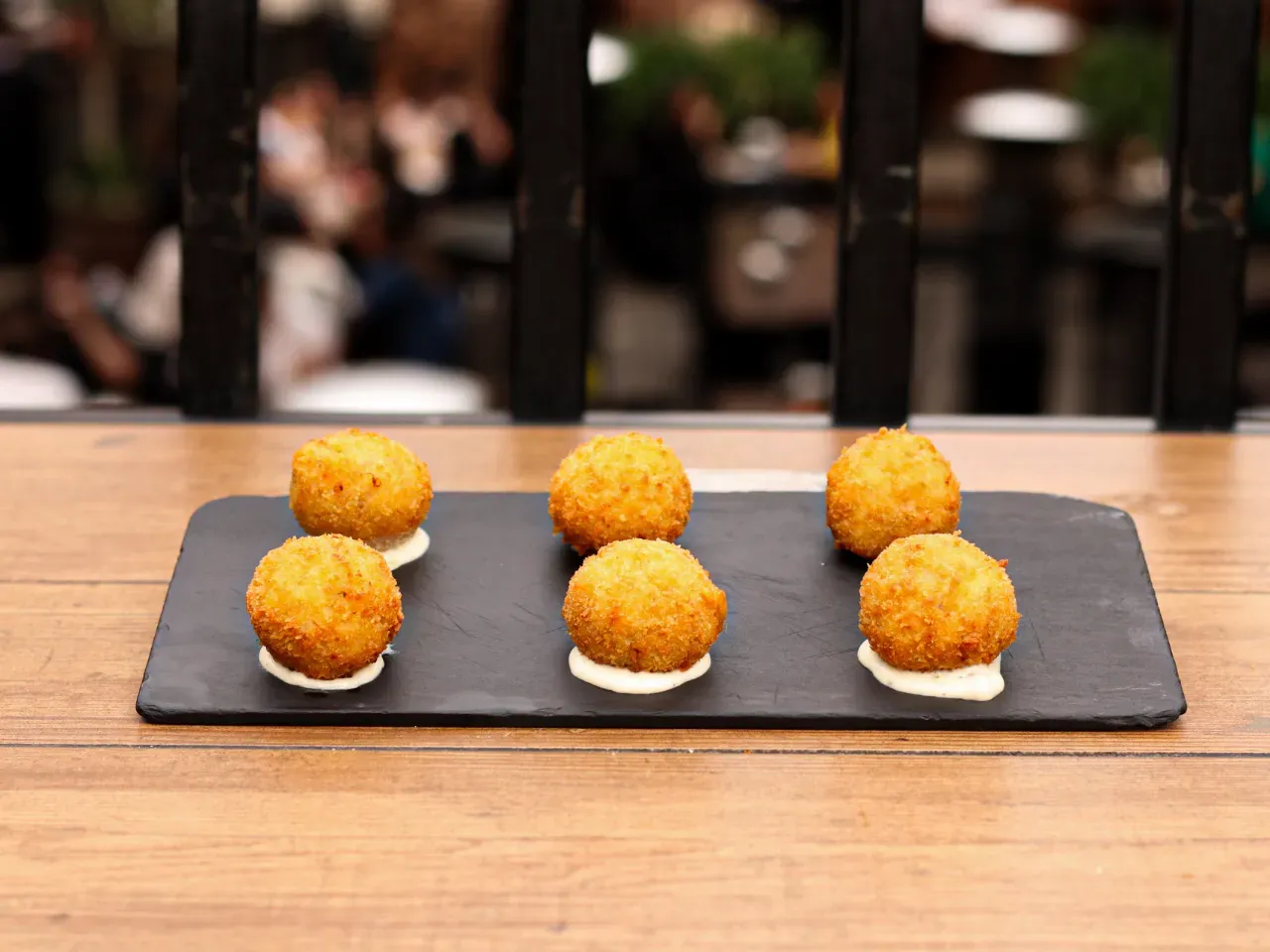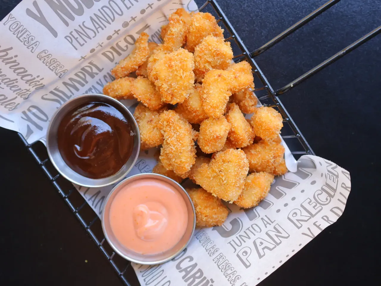 5 unidades apanadas crocantes, servidas con una suave lactonesa y mostaza en granos