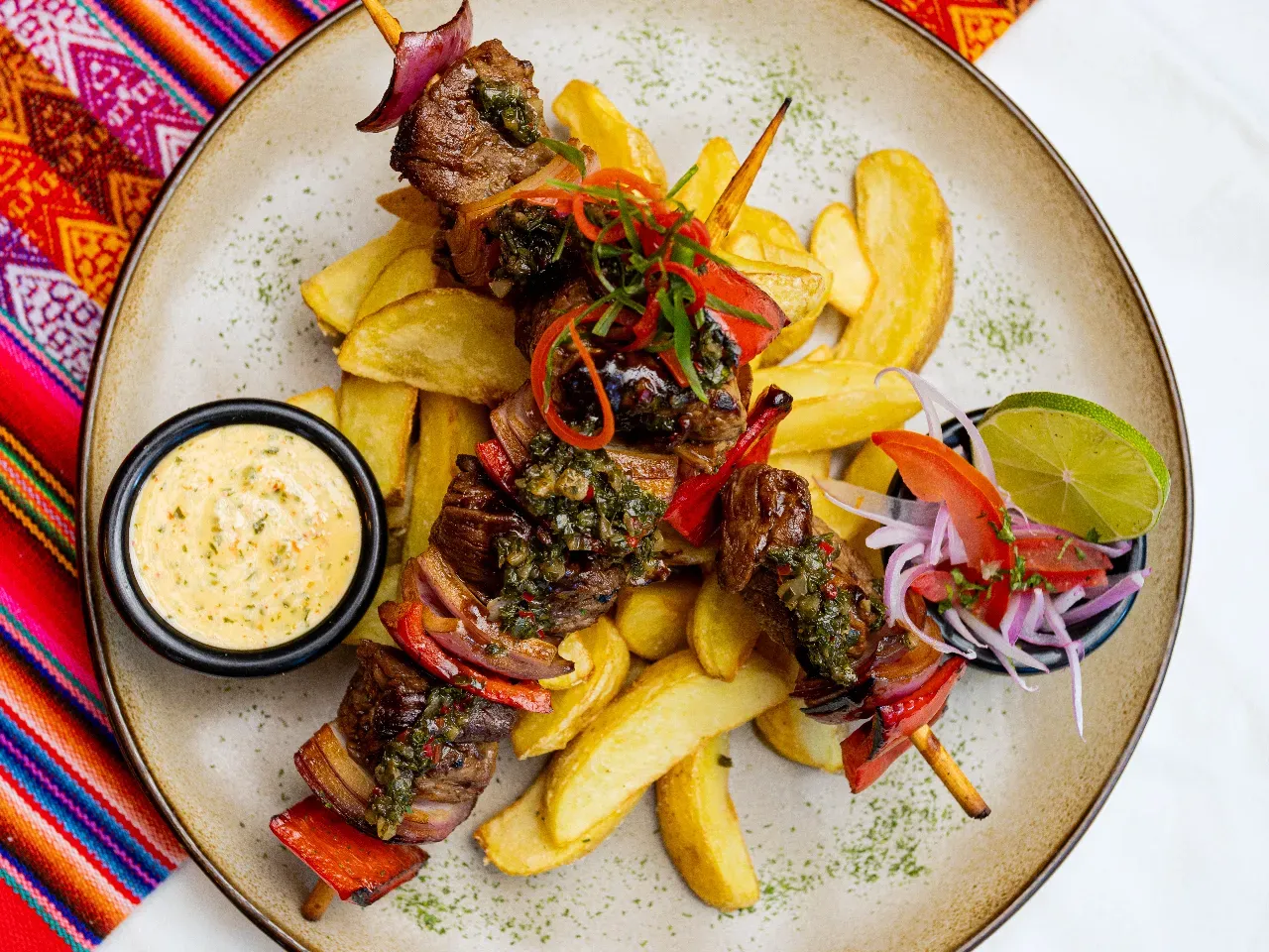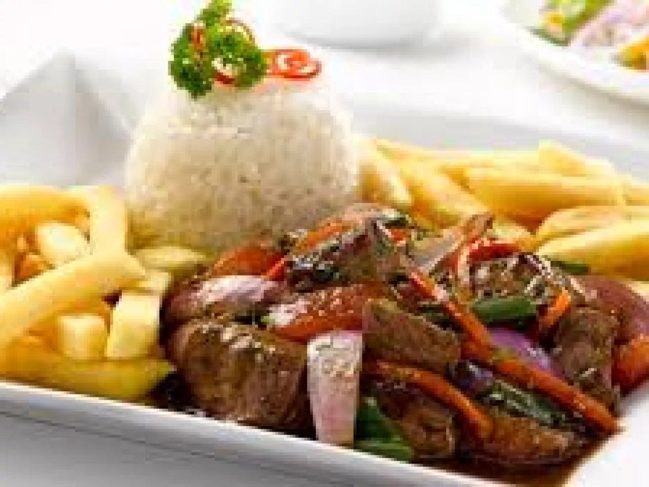Receta estilo peruano, acompañado de cancha, chifle, chips de camote, palta, tostadas, puedes elegir tu proteína entre reineta o mixto con pescado y camaron